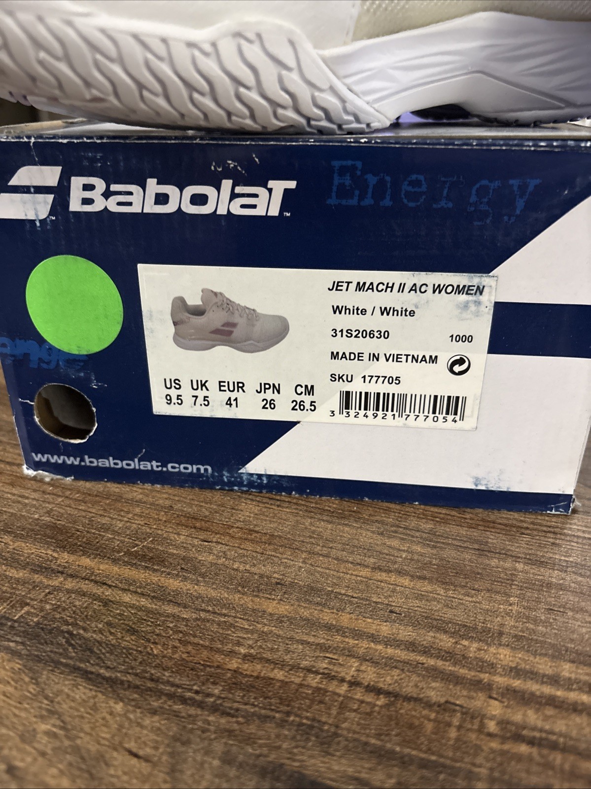 Babolat Jet Mach II AC Womens Size 9.5 White/White Tennis Shoes Brand New