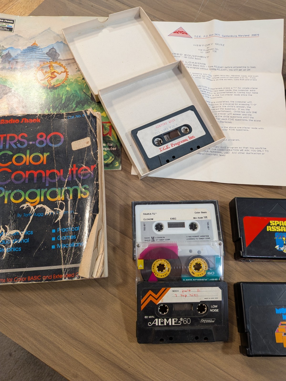 TRS-80 Color Computer 2, 64K Cassette Player , Modem, Games, Book , READ DESC