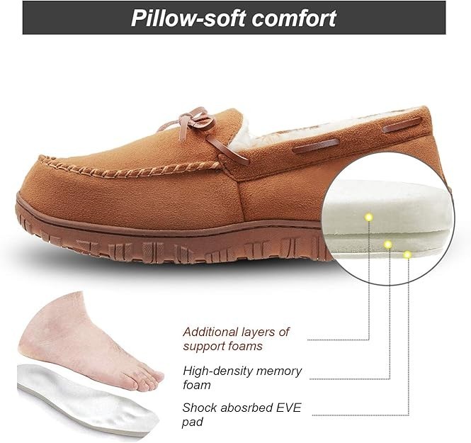 как выглядит Mens Memory Foam Moccasin Slippers Warm Plush Indoor Outdoor Shoes, Size 10 фото