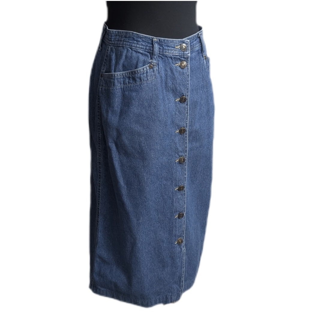 как выглядит 90s Lizwear Medium Wash Denim Button Up Midi Skirt Sz 10 vtg indie grunge J2 фото