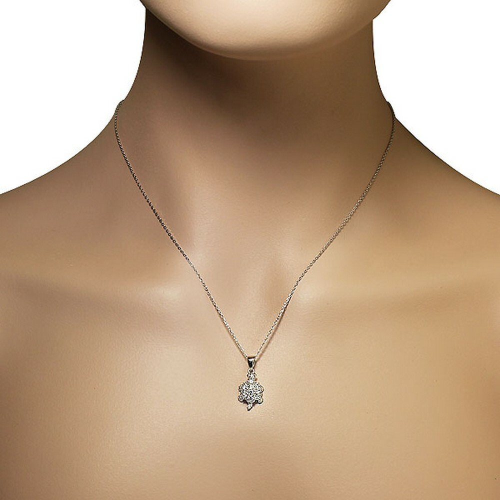 как выглядит Sterling Silver Womens Girls Turtle White Crystals CZ Pendant Necklace фото