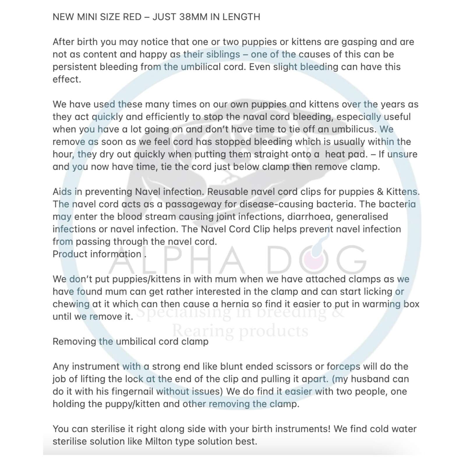 Alpha Dog puppy whelping kit - aspirator, scissors, cord clamps breeder info