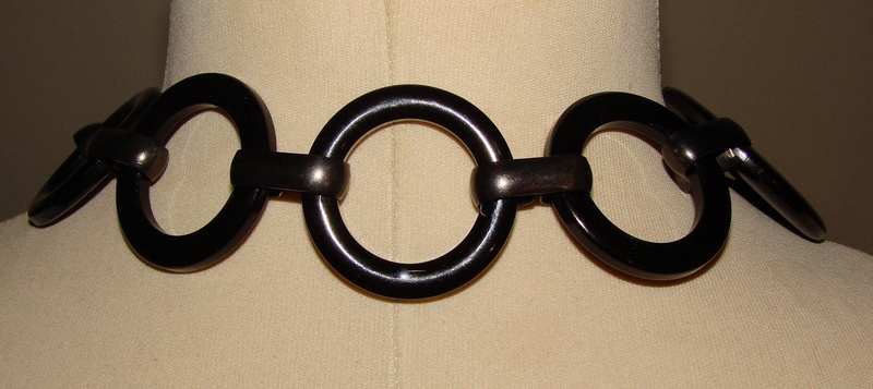VINTAGE BLACK LUCITE DISC CIRCLE BELT STATEMENT NECKLACE MODERNIST MOD RETRO