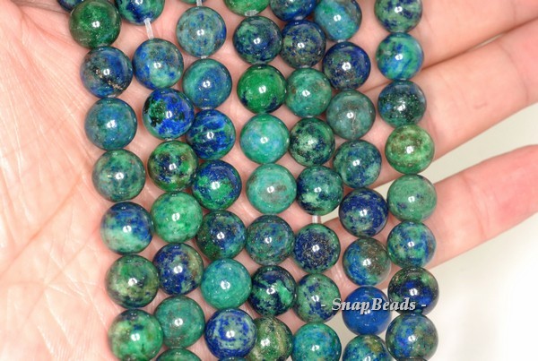 как выглядит 8MM AZURITE GEMSTONE BLUE GREEN ROUND 8MM LOOSE BEADS 15.5inch фото