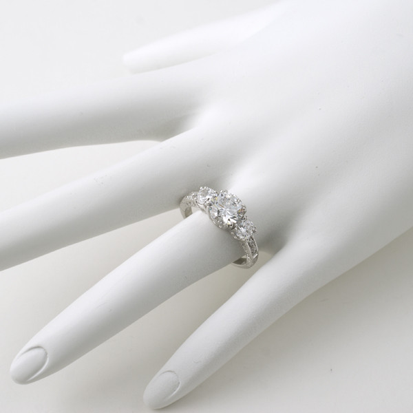 как выглядит Sterling Silver Fancy Art Deco 3 Stone Flawless AAA CZ Engagement Ring фото