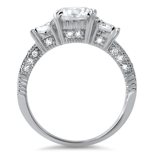 Sterling Silver Fancy Art Deco 3 Stone Flawless AAA CZ Engagement Ring
