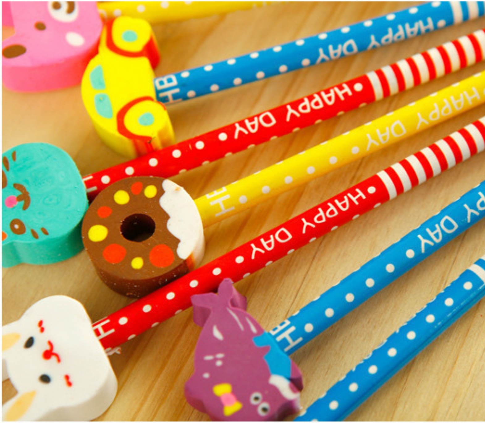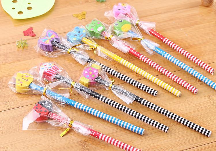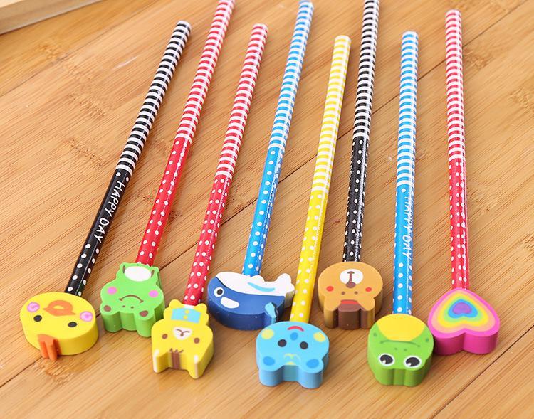 Lot 9 Animal Eraser Topper Wooden Pencils Cartoon Kawaii Cute Kid school Supply