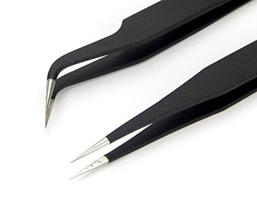 2 Pcs Eyelash Extension Tweezers Straight Curved Black Tweezers
