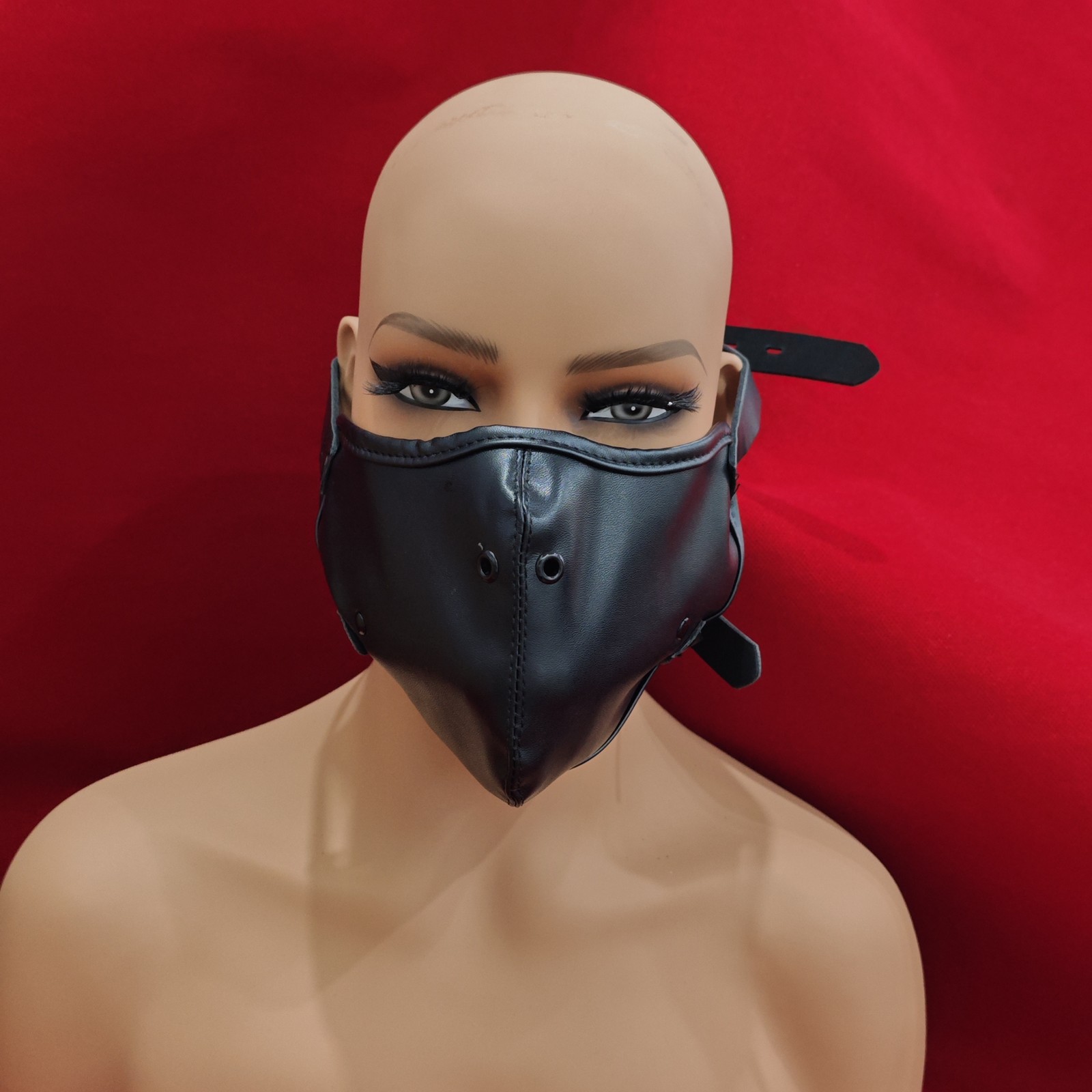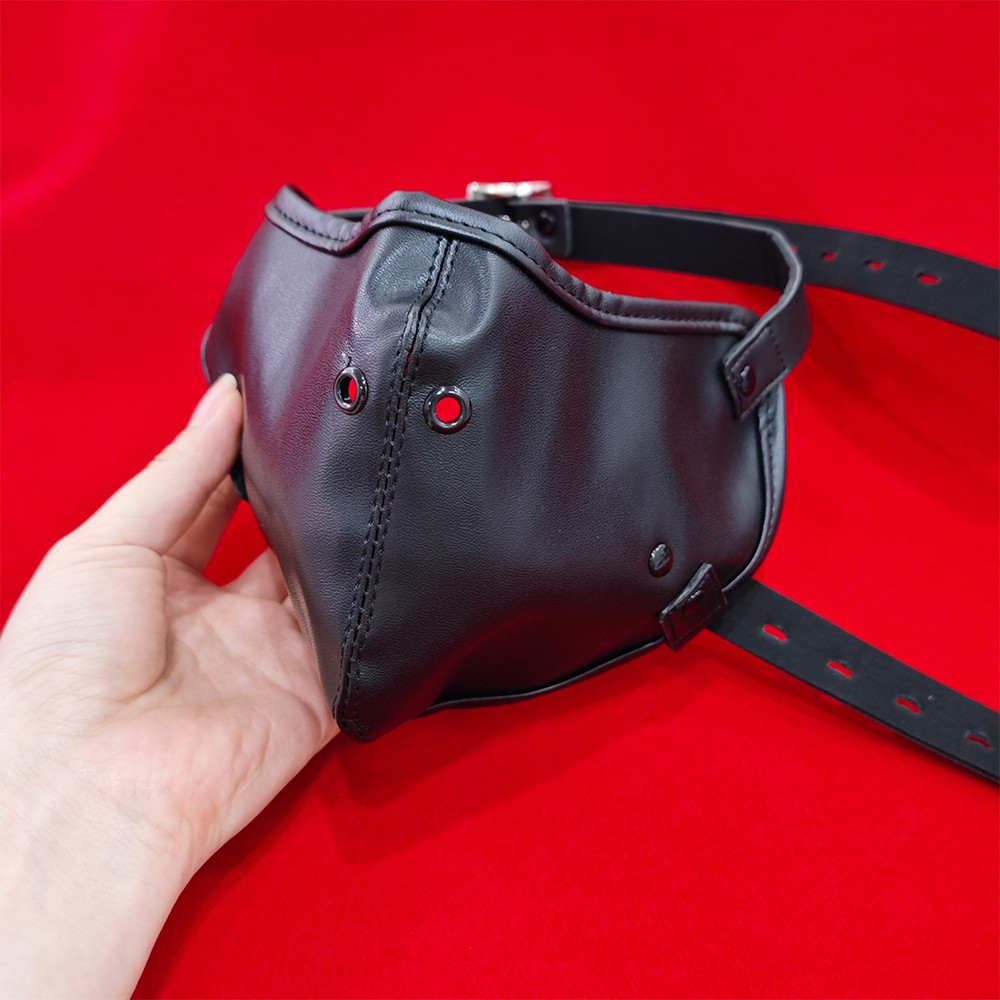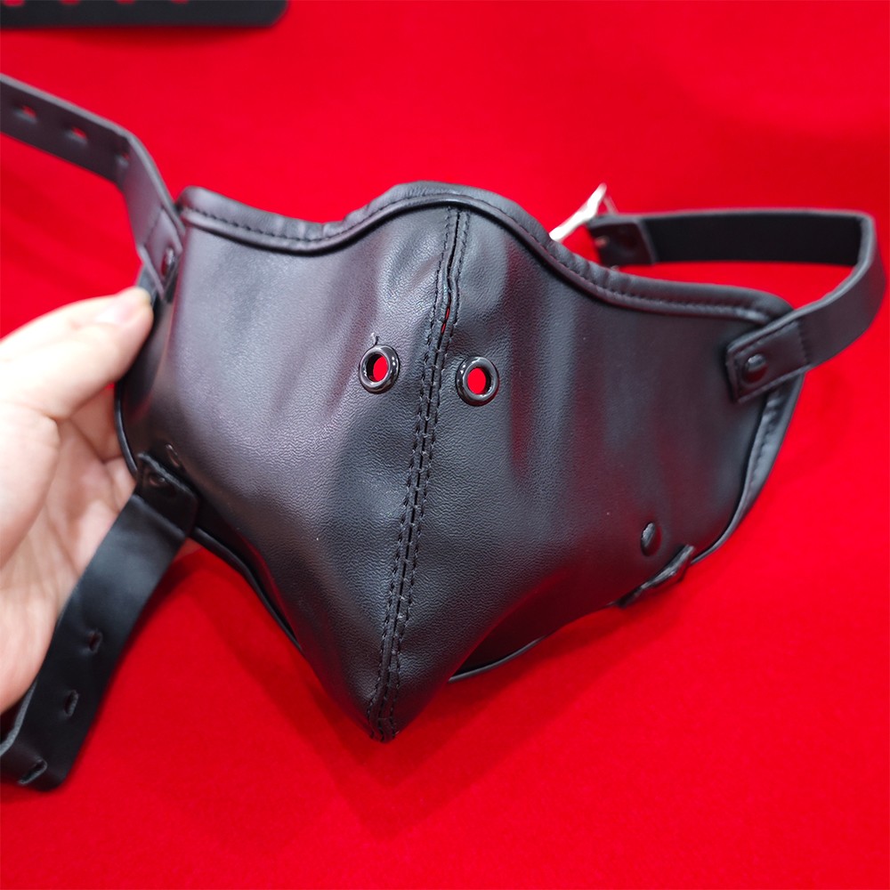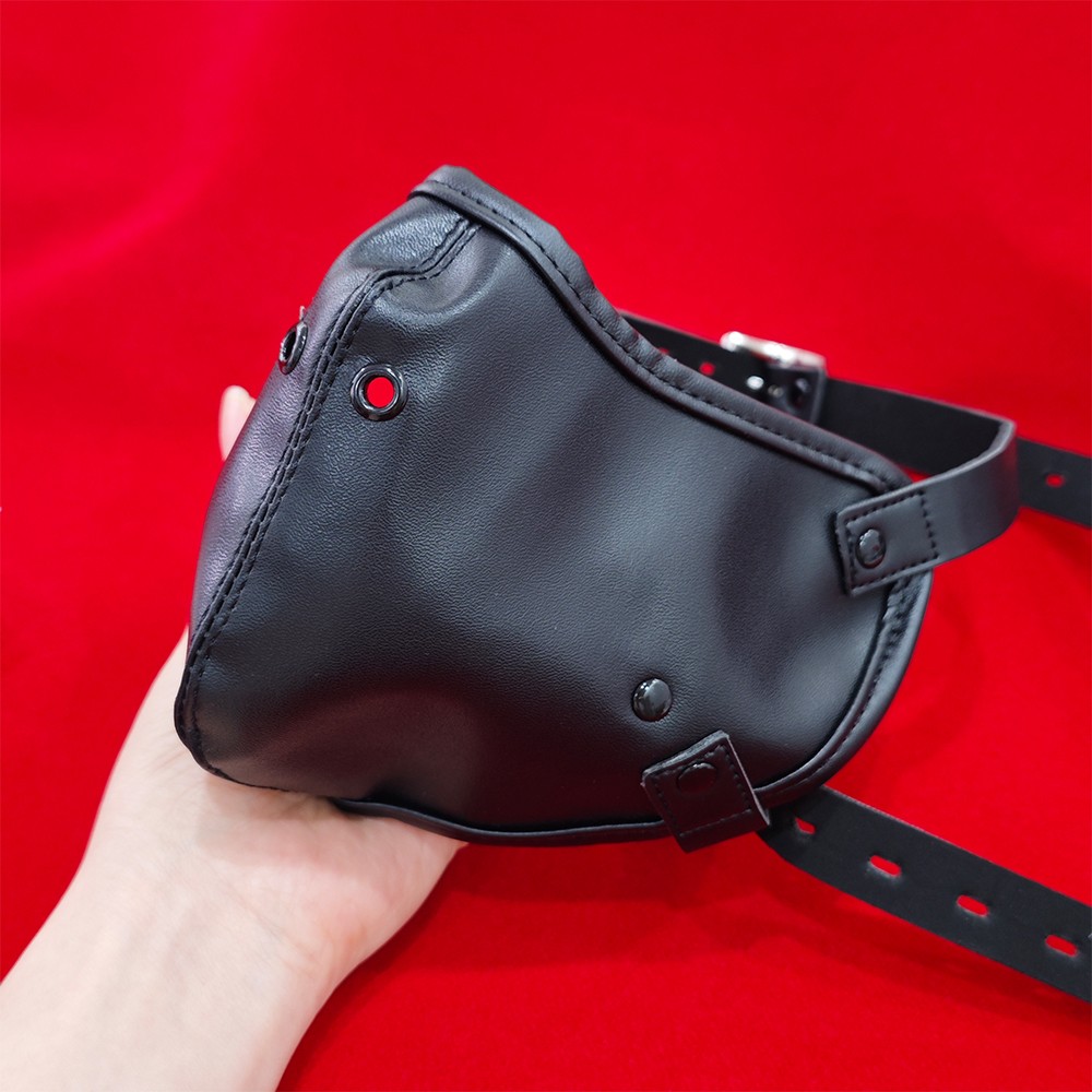 Bondage PU Leather Face Mask with Open Mouth Breathable Hard Gag Roleplay BDSM