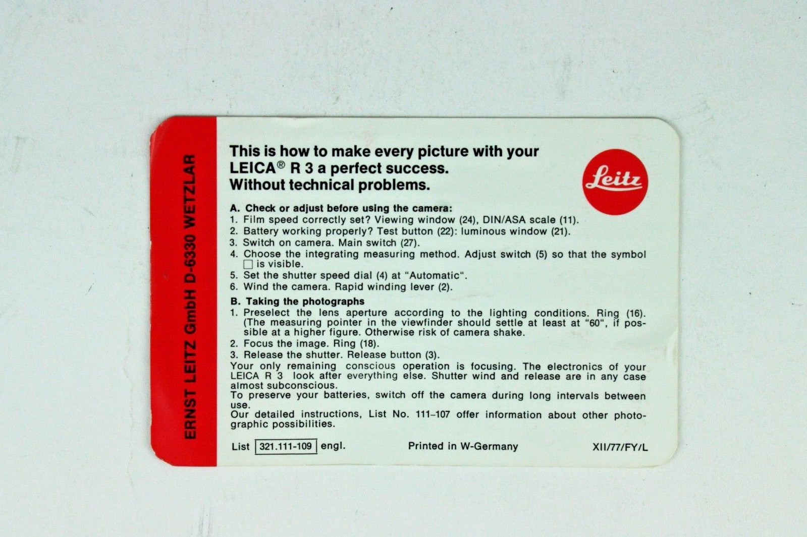 как выглядит 189517 Leitz Leica R3 Product Brochure and Pocket Quick Guide Genuine Original фото