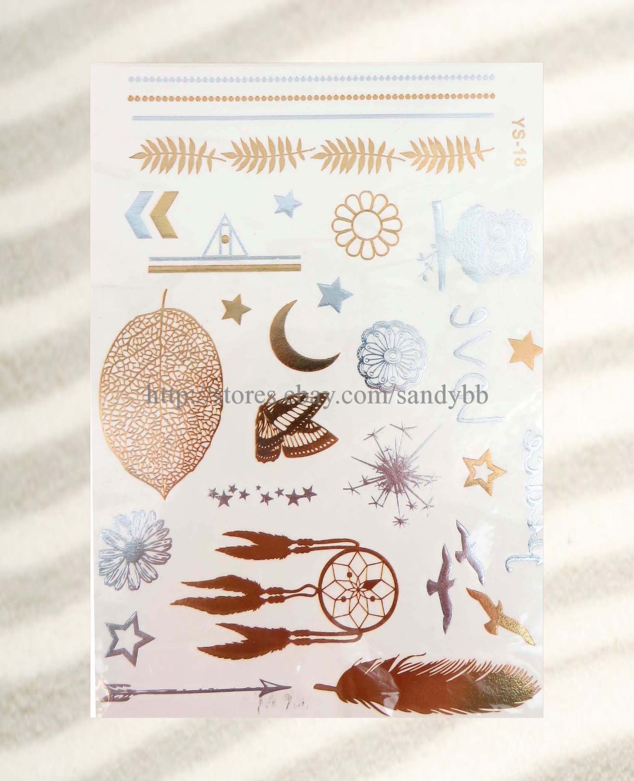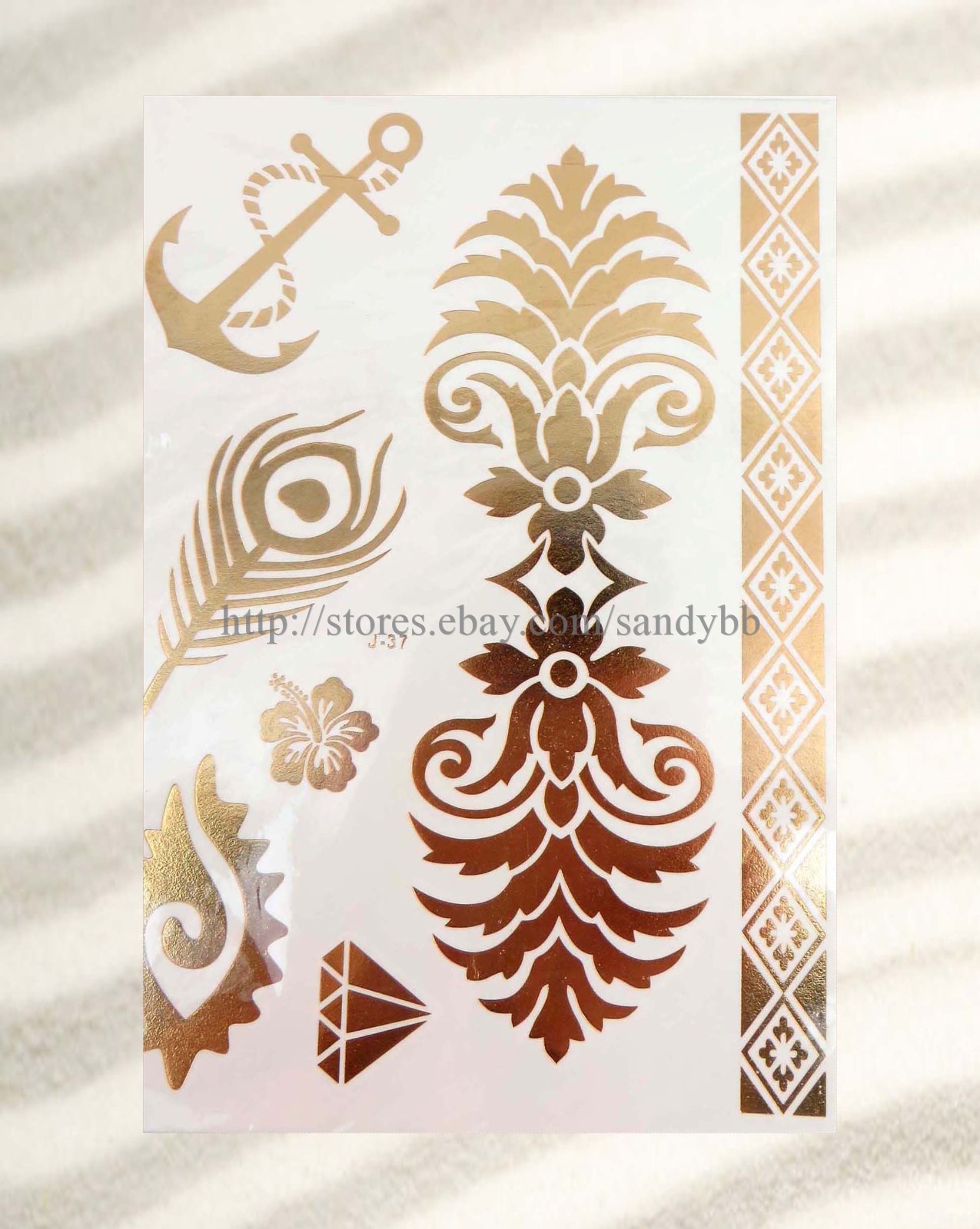 как выглядит 10 sheets Egyptian mandala flash metallic tattoos gold silver Body Sticker фото