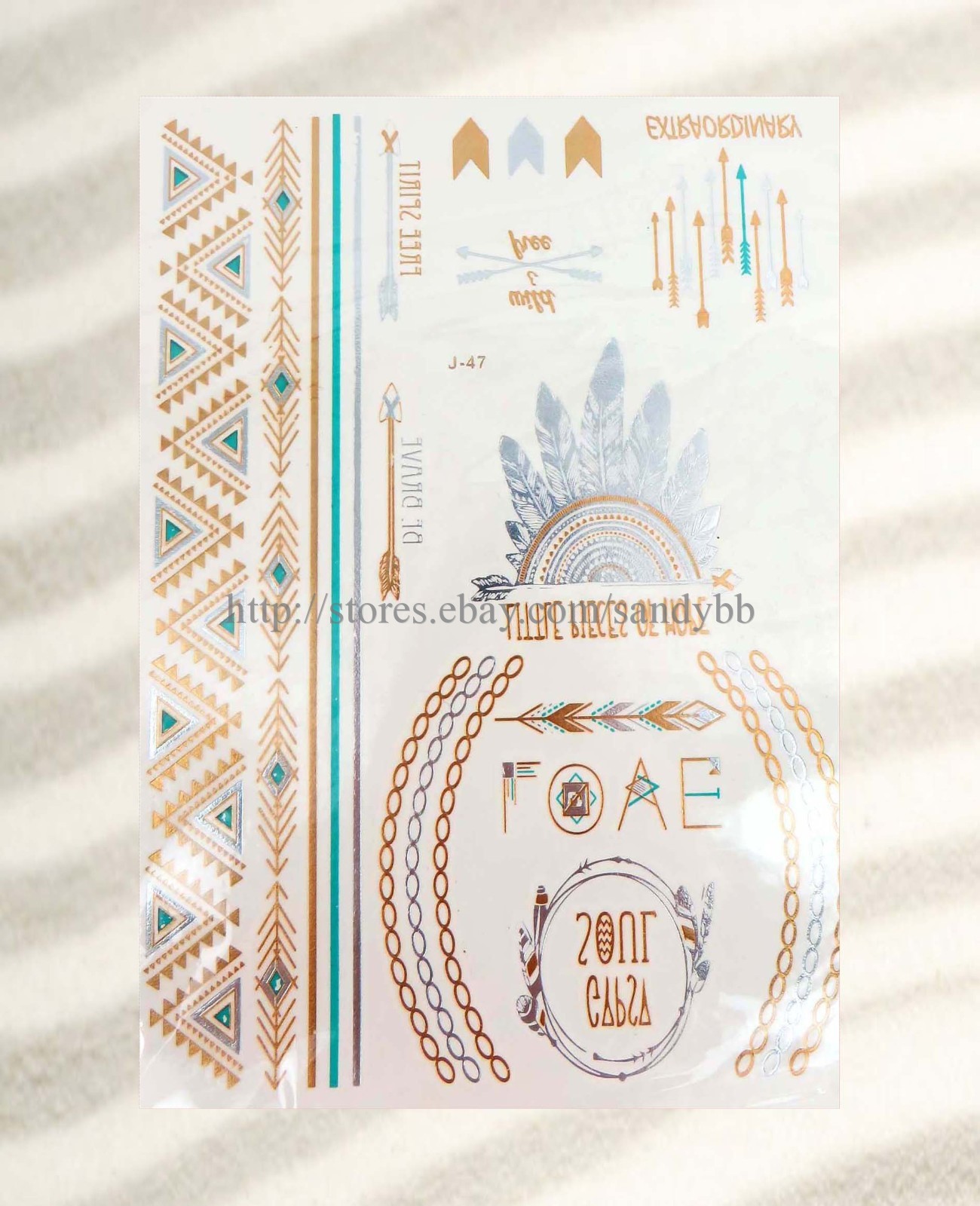 10 sheets Egyptian mandala flash metallic tattoos gold silver Body Sticker