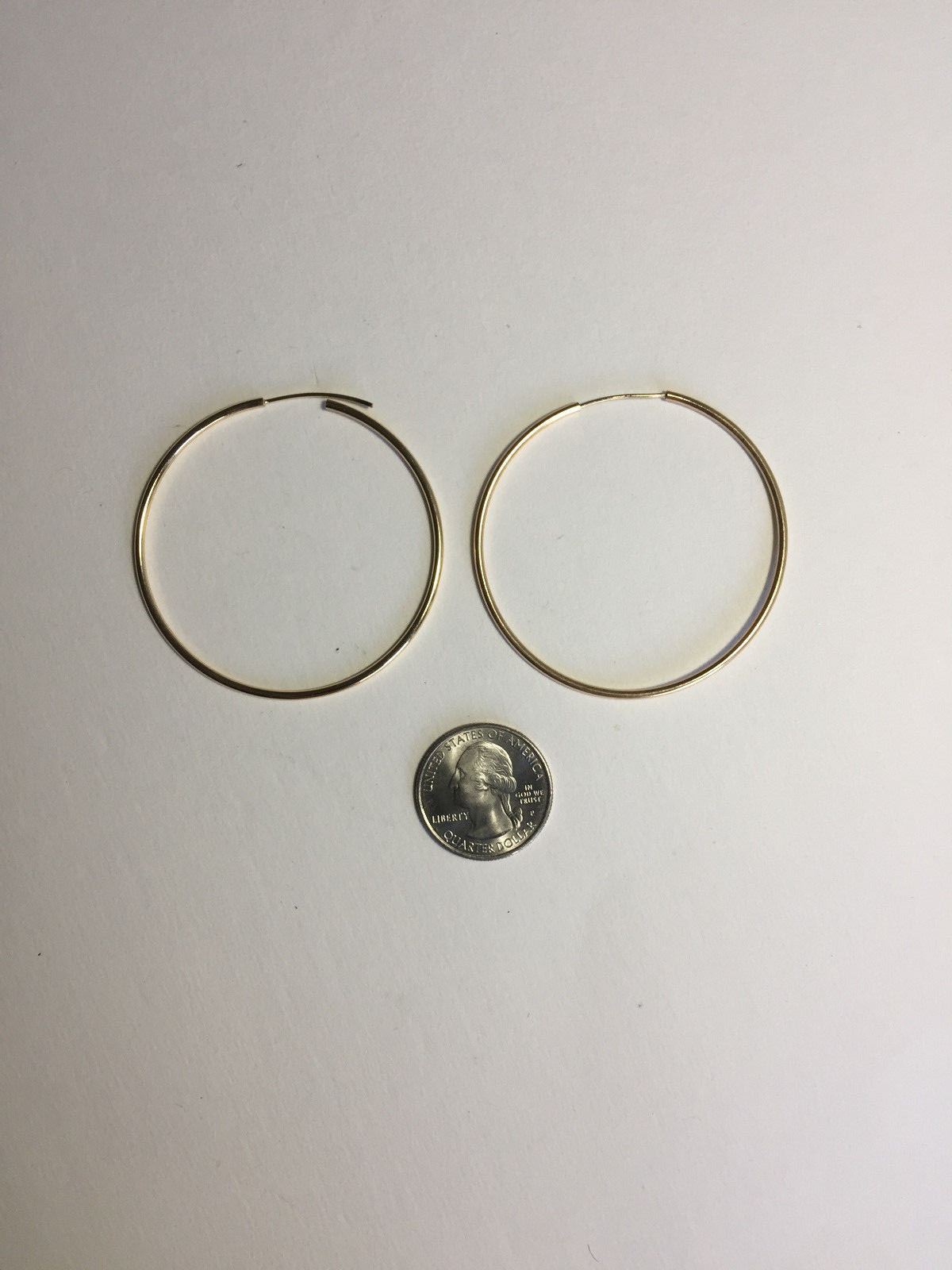 как выглядит 14K GOLD PLATED HOOP ENDLESS HOOP EARRINGS 2x50MM J155 фото