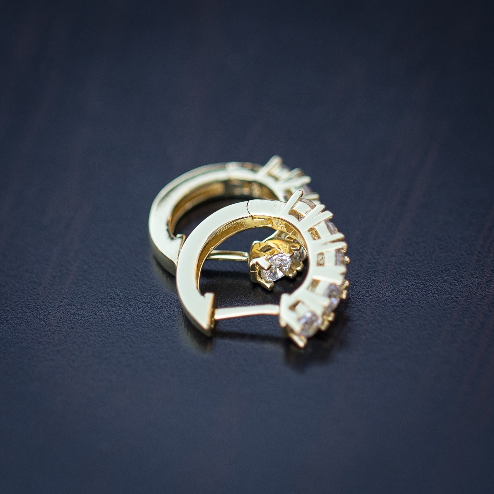 как выглядит Yellow Gold Plated Iced 925 Sterling cz Solitaire Huggie Hoop Earrings фото