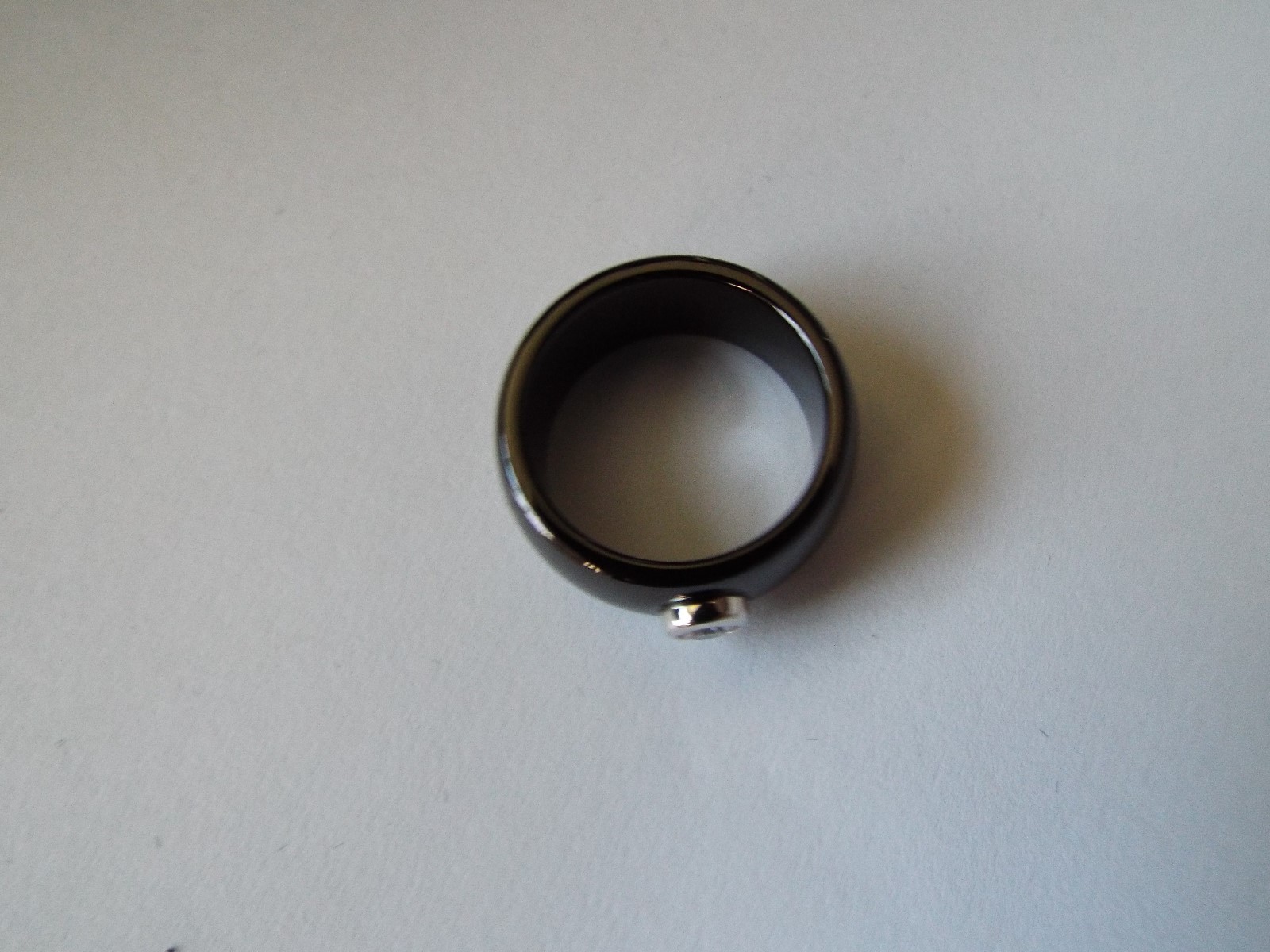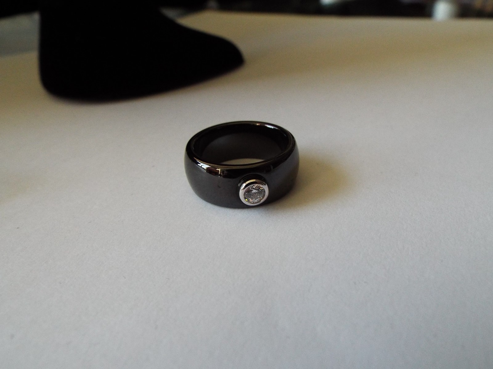 как выглядит Black ceramic ring with cz set in sterling silver ring size 7.5 фото