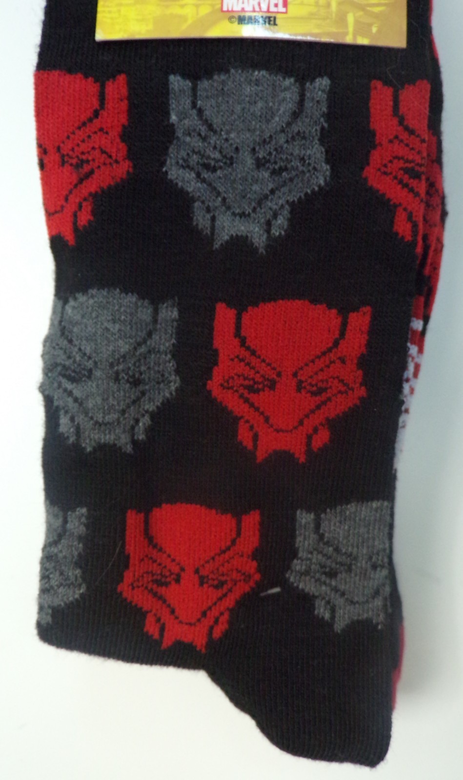 NEW MARVEL BLACK PANTHER Mens Shoe Size 6-12 Black Red Two Pack of Crew Socks