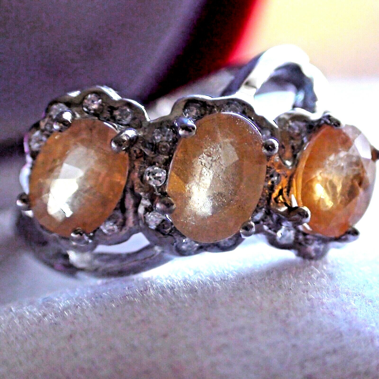 LOVELY NATURAL YELLOW SAPPHIRE 17.82 CT RING 925 SILVER.SIZE 6.5.