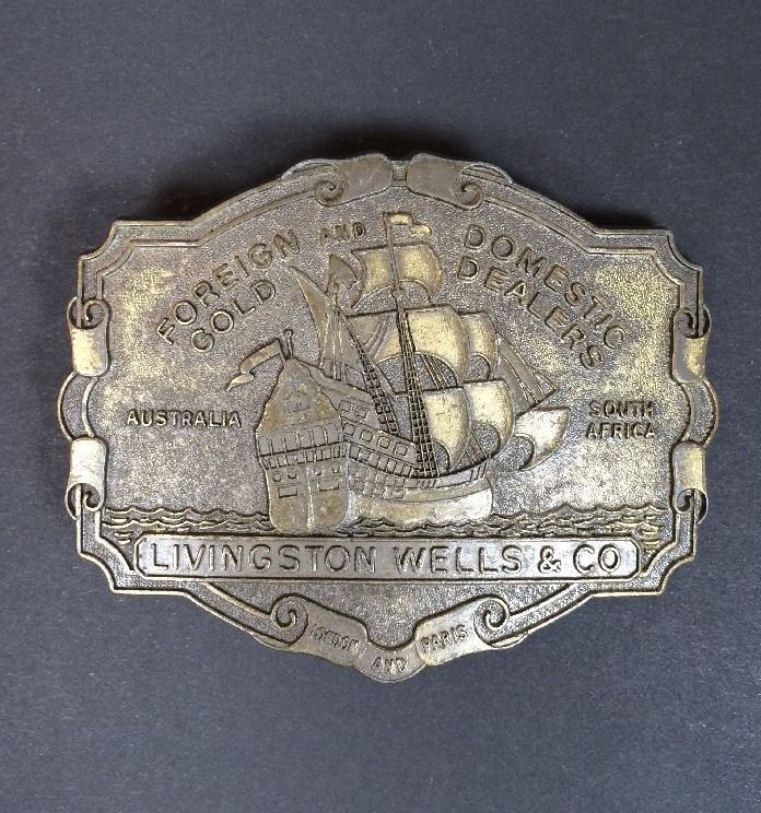 Vintage 1970's Livingston Wells Co. Foreign Gold Dealers Ship Belt Buckle