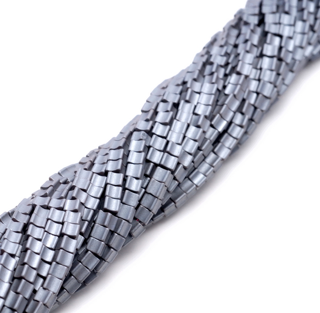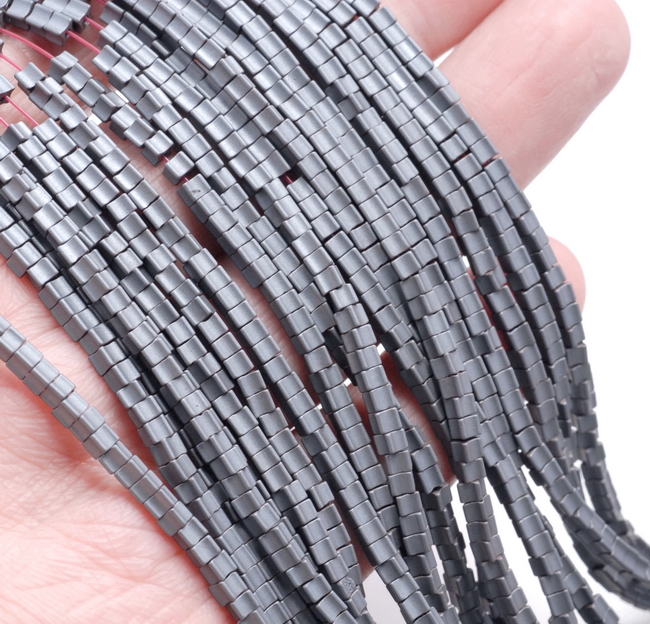 как выглядит 2MM MATTE BLACK HEMATITE GEMSTONE SQUARE ROUDED CUBE LOOSE BEADS 16" фото