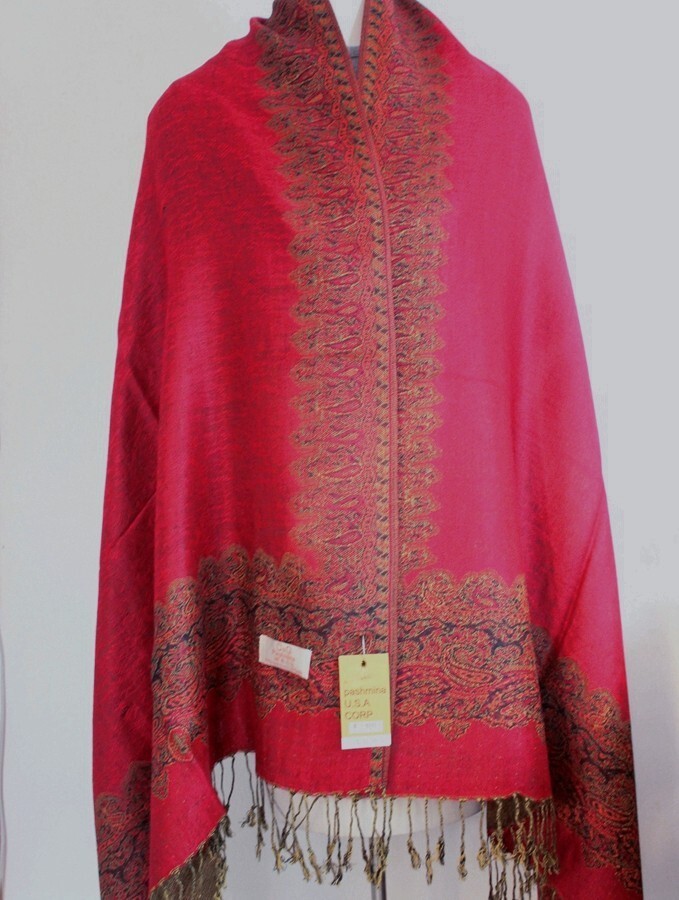 Women's Pashmina Scarf Shawl Warp Paisley Black Red Silk.Cashmere Soft