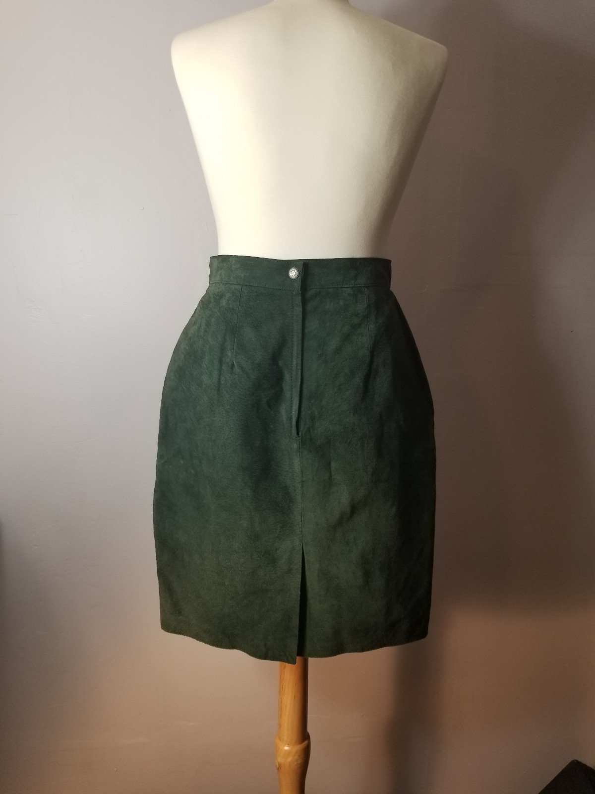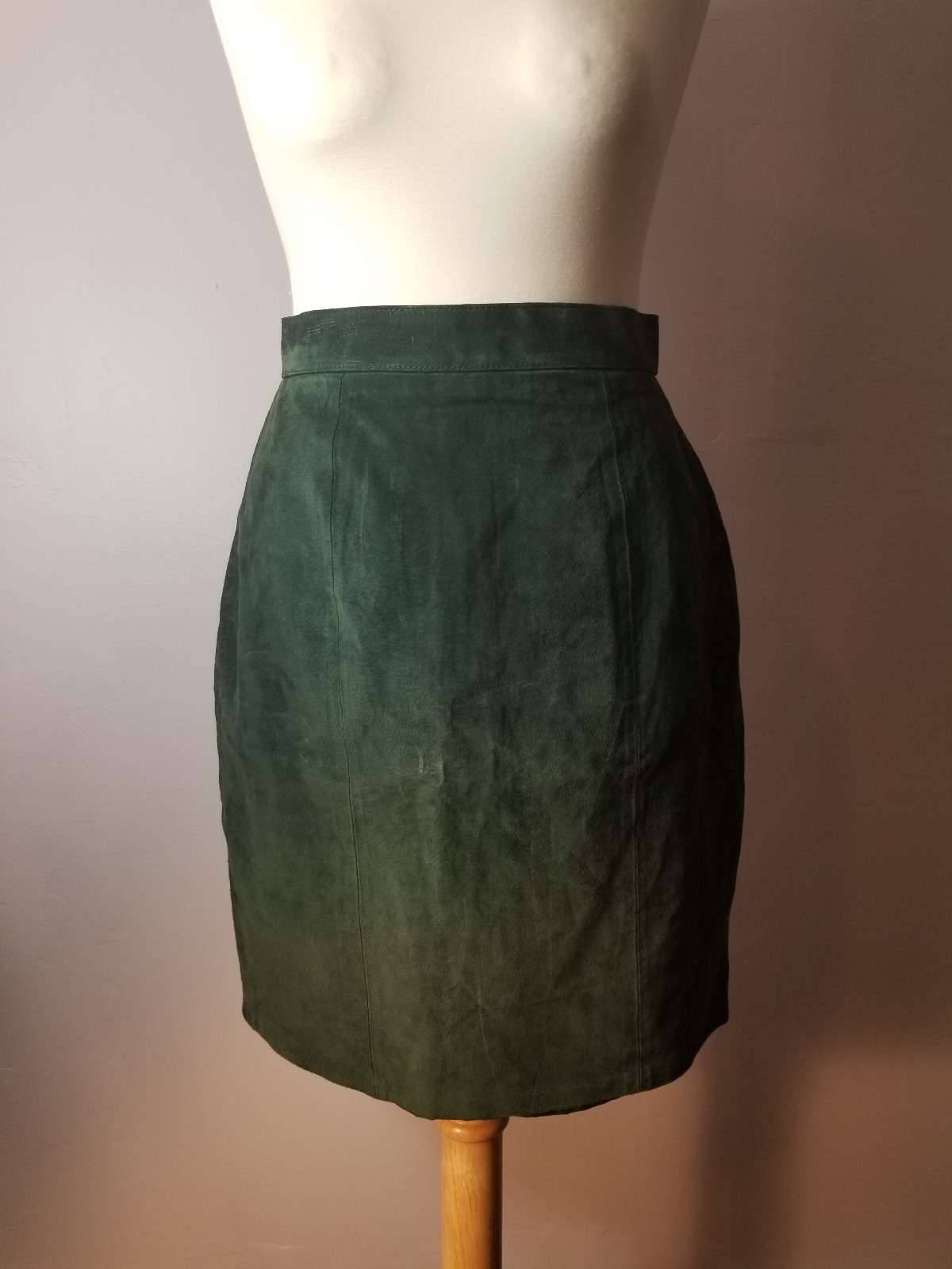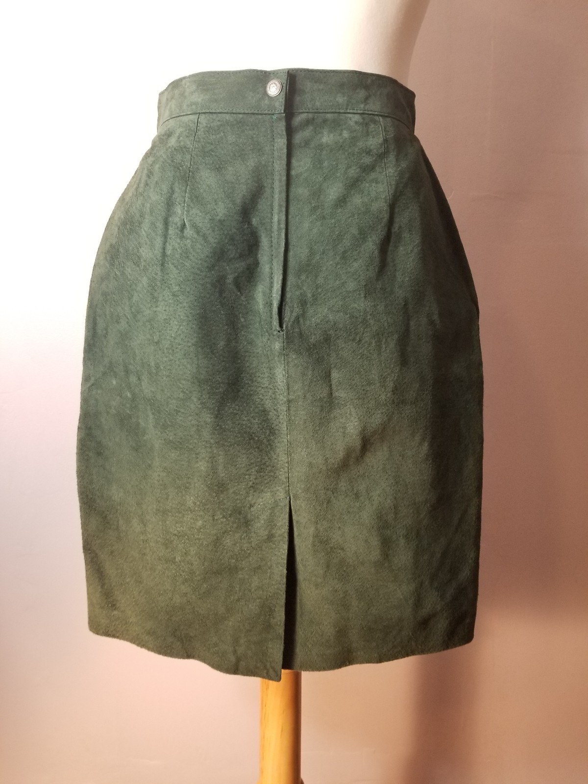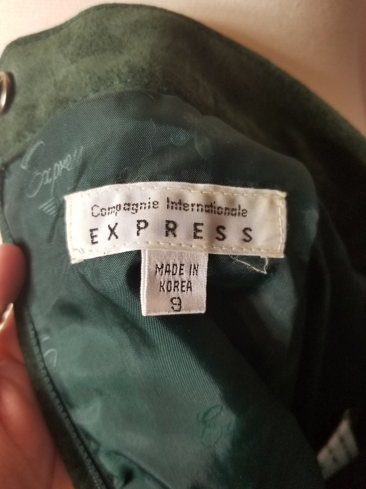 как выглядит Express Leather Suede Hunter Green Silver Button Mini Skirt фото