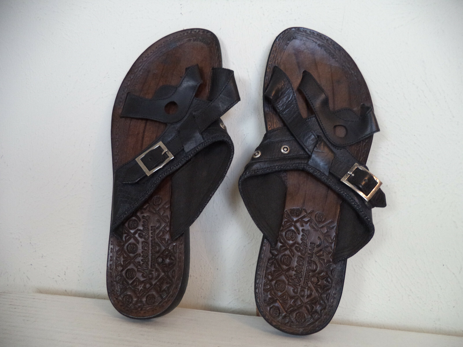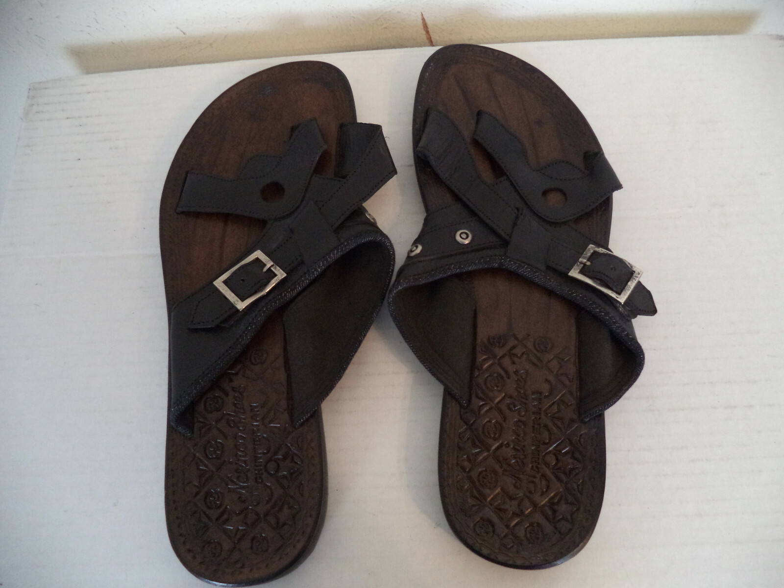 Men's Black Handmade Nesinco Slippers Sandals. Genuine Leather. Side Buckles.