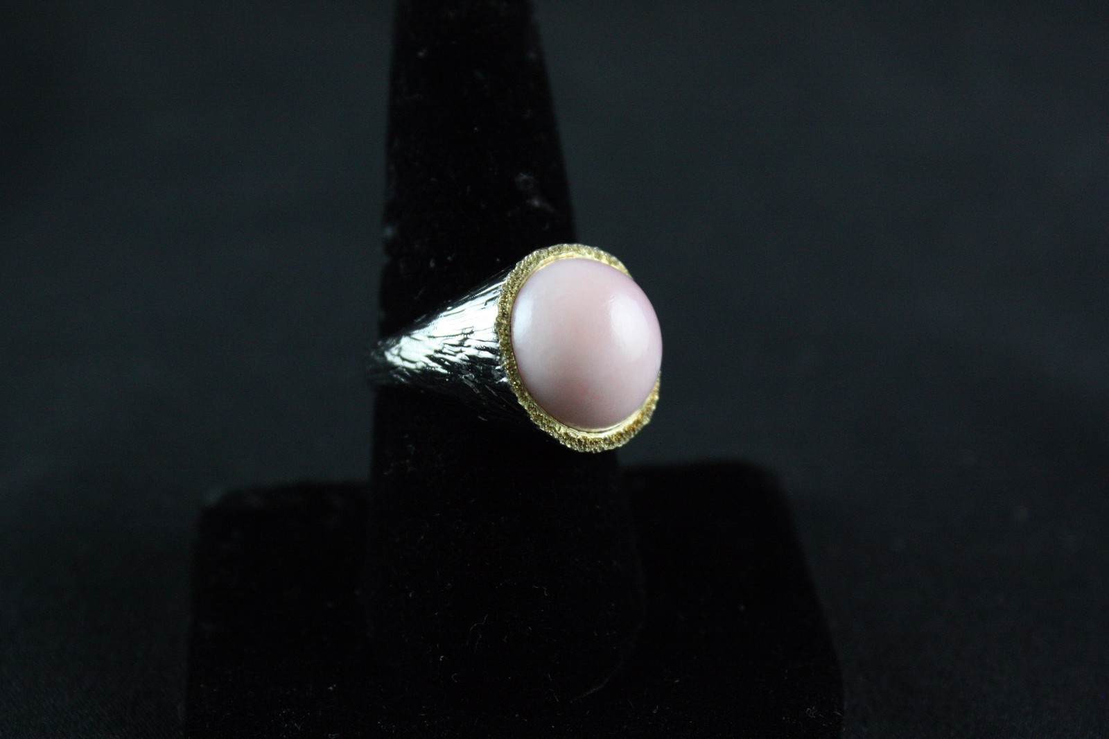 как выглядит Oxidized Sterling Silver Ring Pink Opal Gemstone Handcrafted Size 8 Adjustable фото