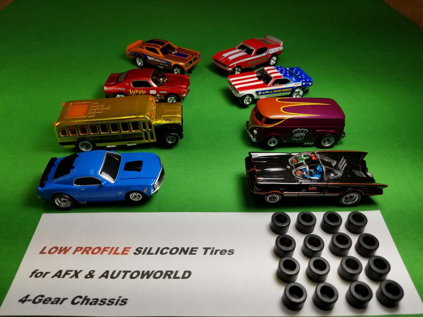 AFX AURORA Auto World 16 Piece SILICONE TIRES for 4-Gear Chassis Slot Car part