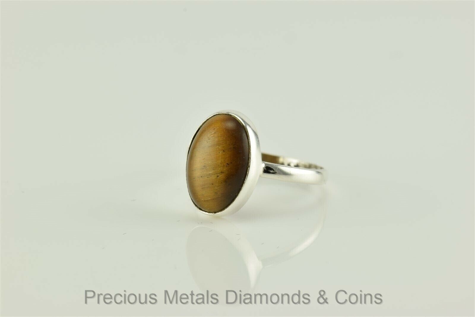 Sterling Silver Bezel Set Oval Tiger's Eye Ring 925 Sz: 7.5