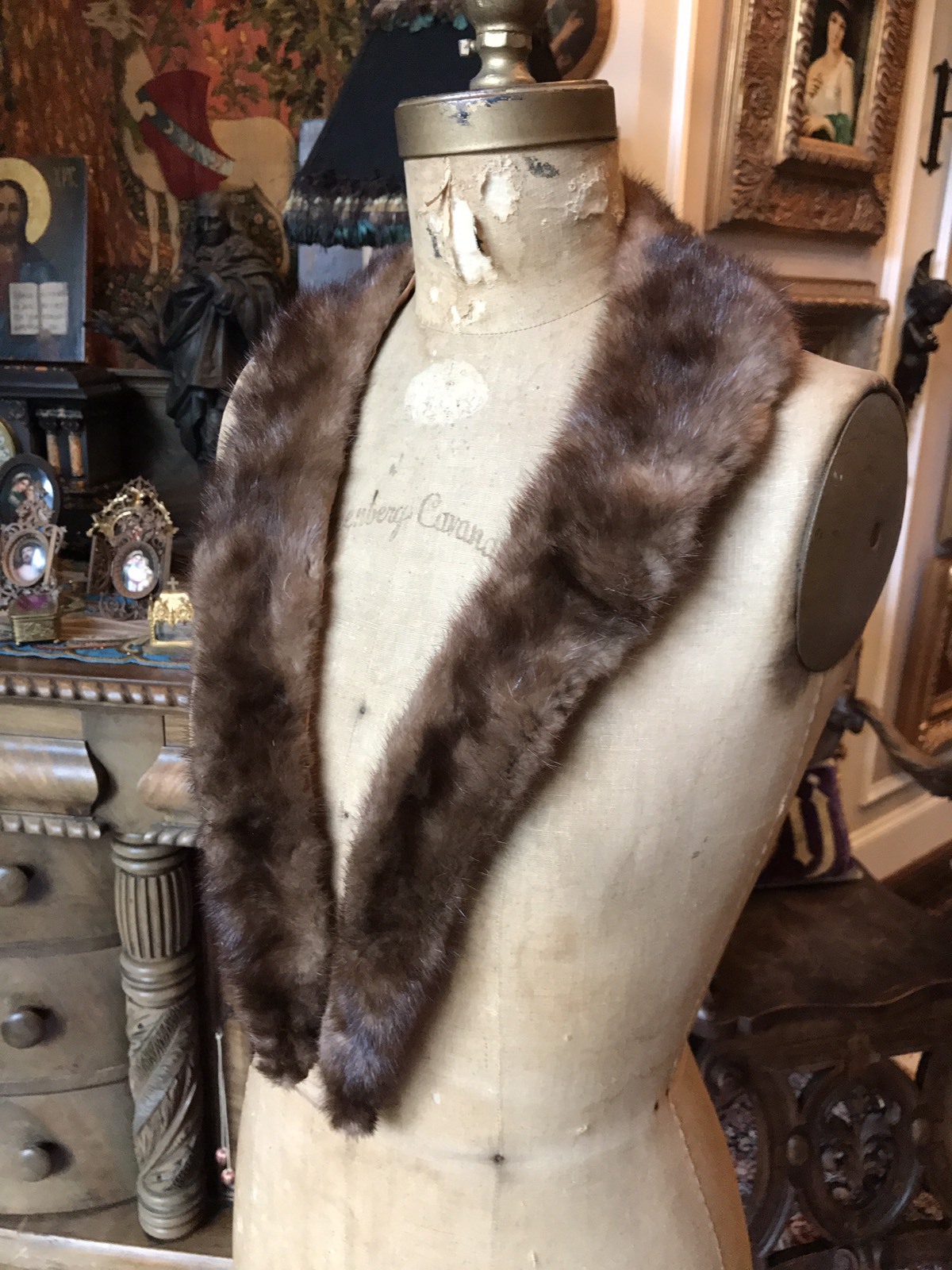 VINTAGE BROWN RANCH MINK Replacement COLLAR, Tapered, 52 X 3.25