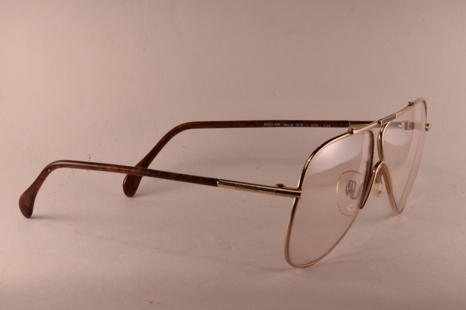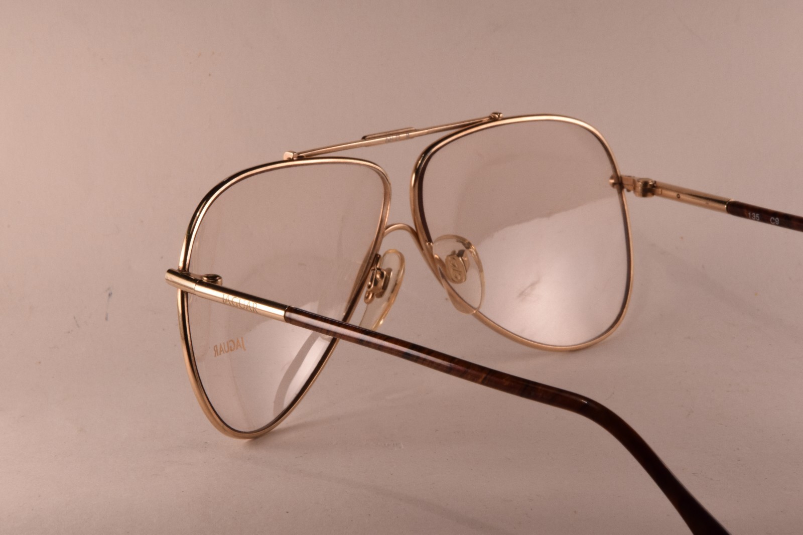 как выглядит NOS Vintage sunglasses frame Jaguar mod. 303 - 500 gold size 58 8 from 80s фото