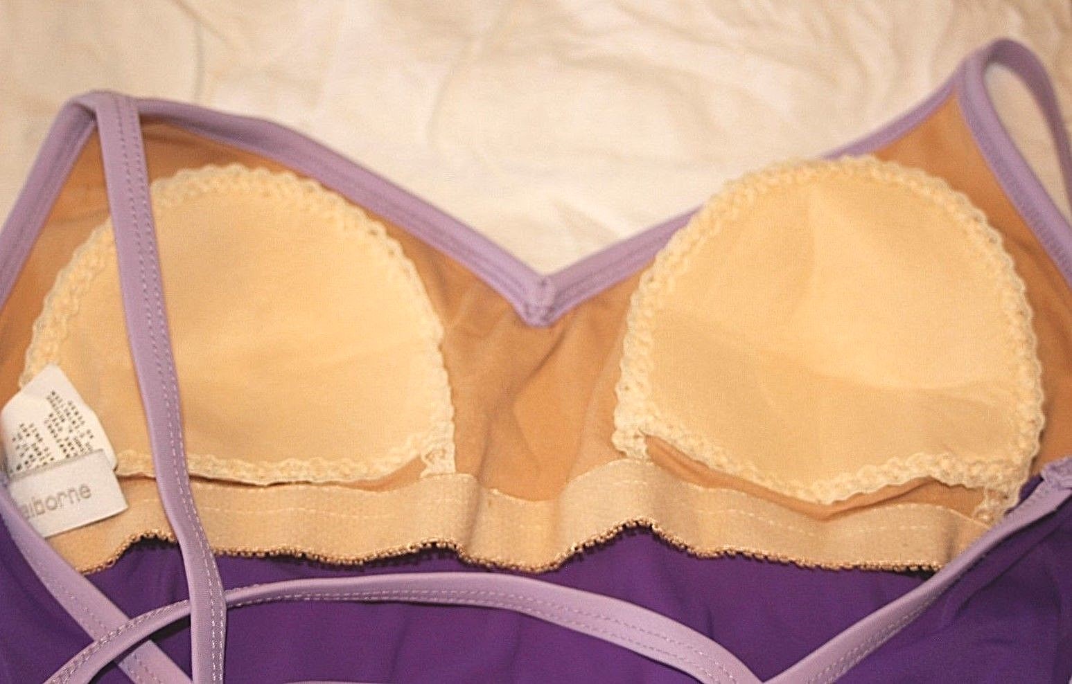 как выглядит LIZ CLAIBORNE Swimsuit 1 Piece Crisscrossed Back Purple Lavender Sz 8 VG фото