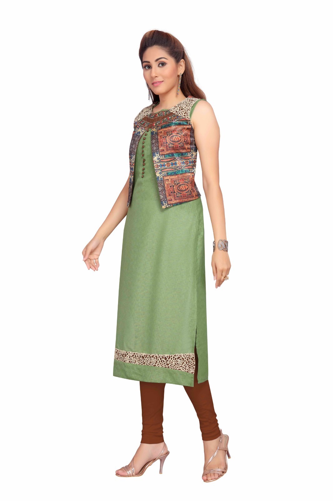 Indian Designer Green Kurti Bollywood Latest w/Fancy Jacket Ethnic Casual