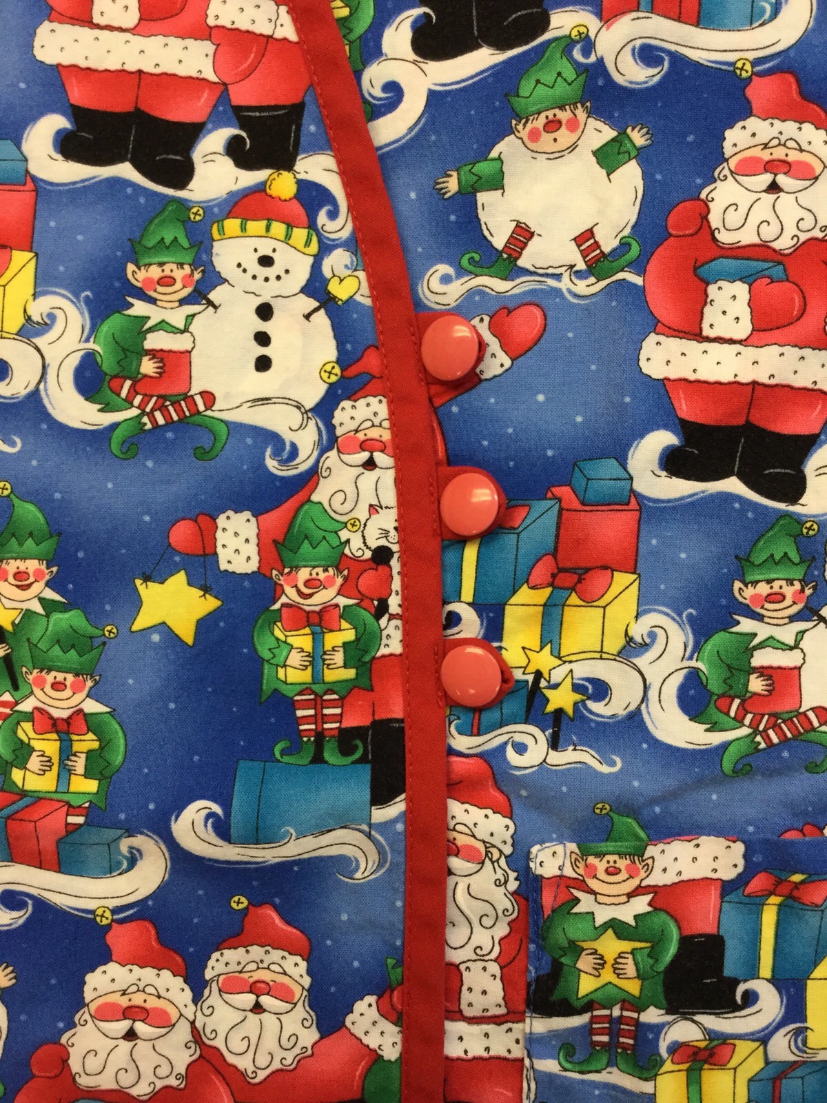 White Cross Women's CHRISTMAS Scrubs Top Shirt Uniform Santa Pockets Size M a