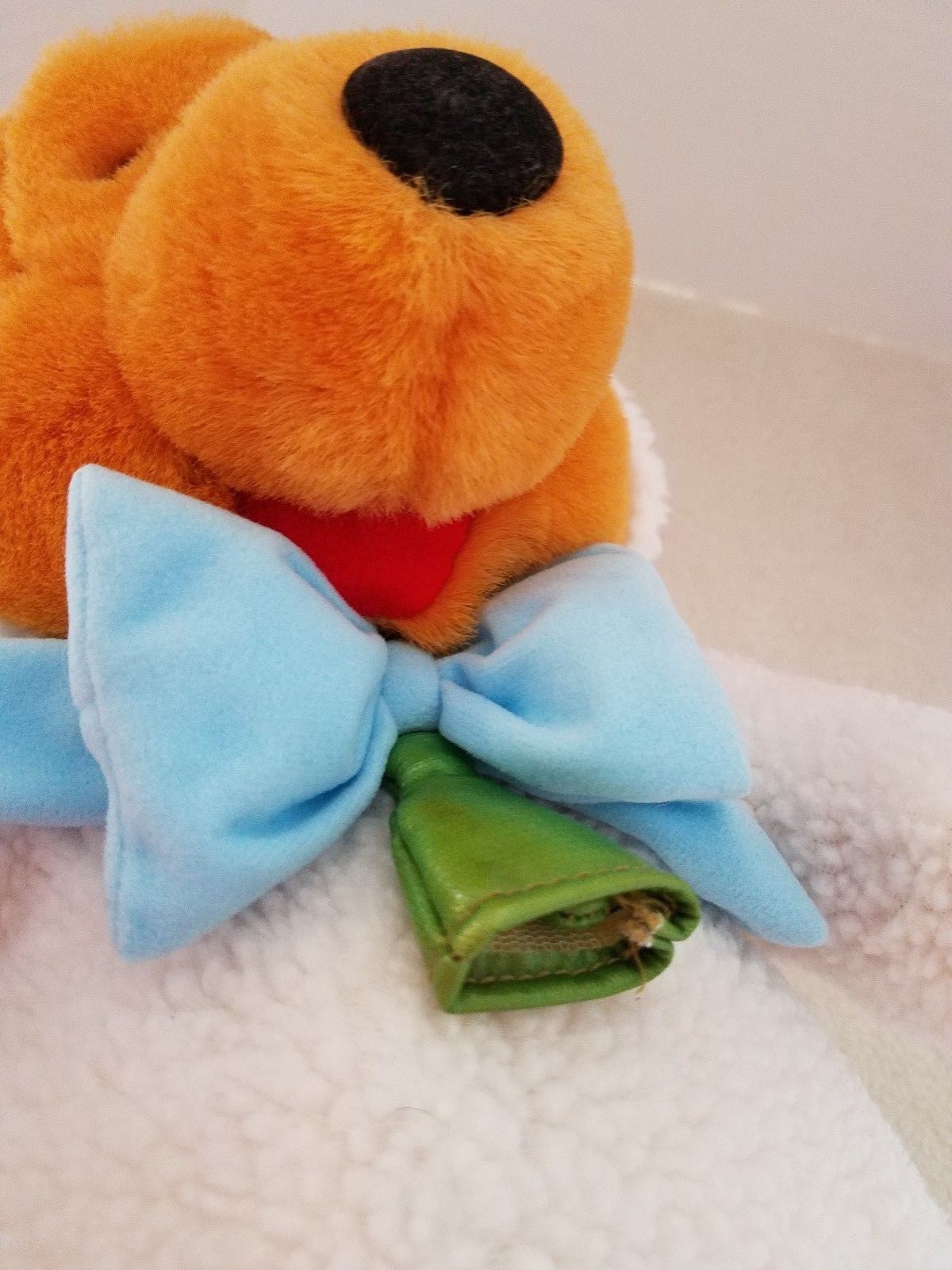 как выглядит WINNIE THE POOH-SHEEP/LAMB RATTLES PLUSH BLUE BOW BELL 14 " фото