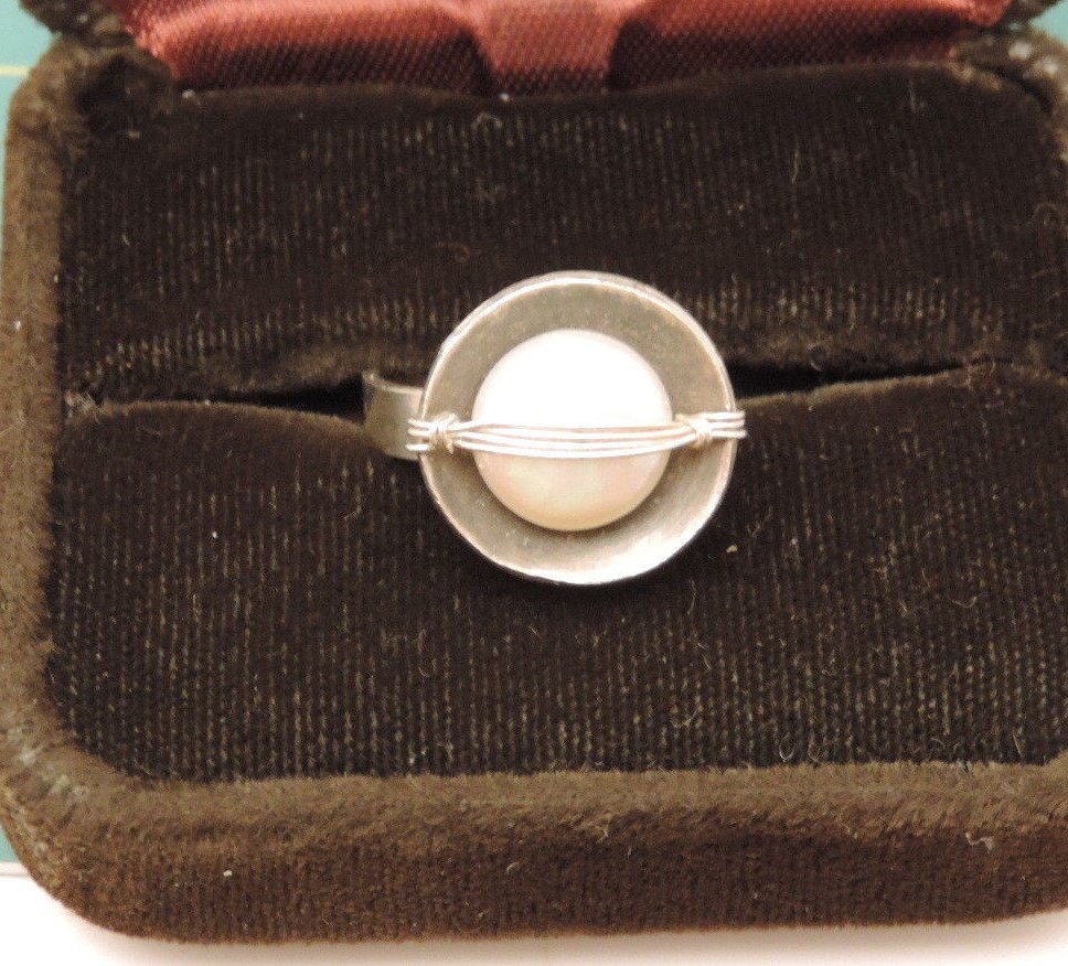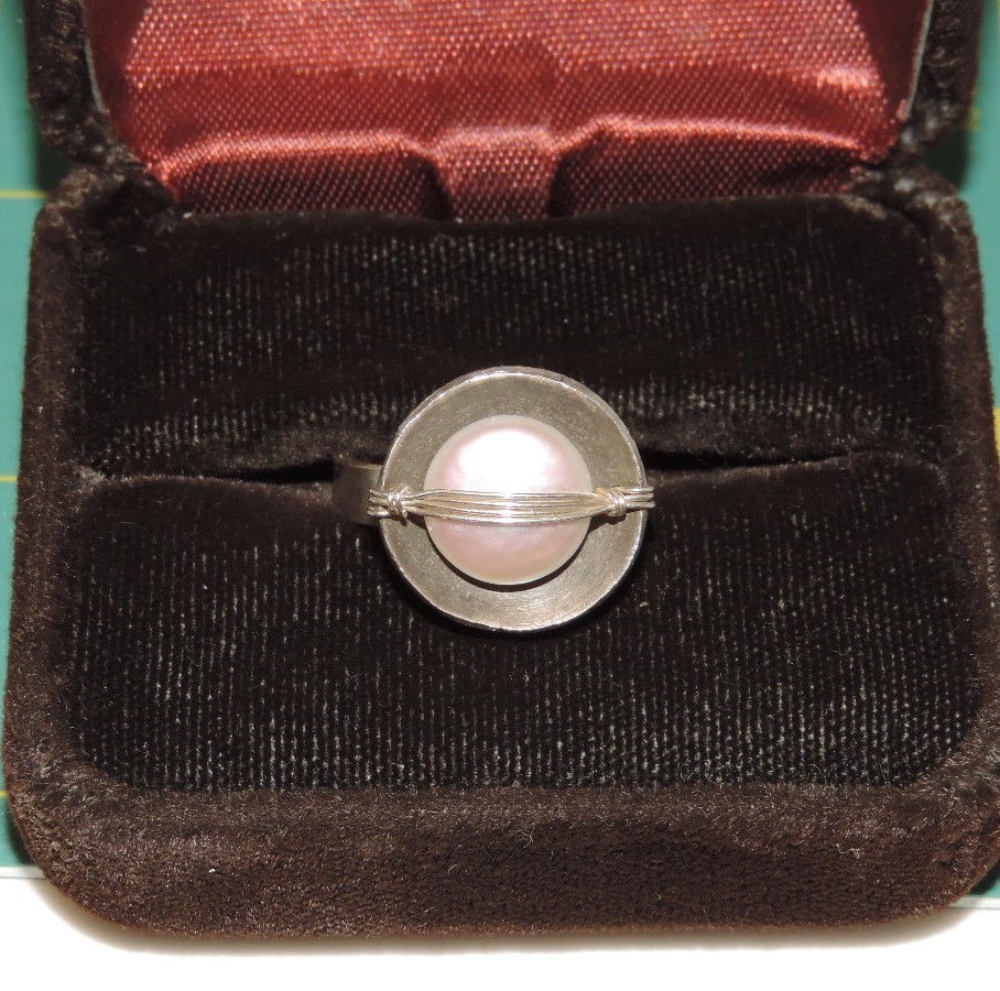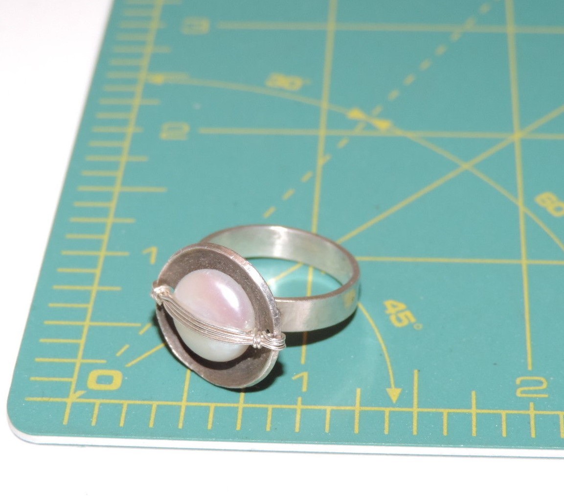 как выглядит Handcrafted 925 Sterling Silver White Coin Pearl Wrap size 7 Circle Ring J 62 фото