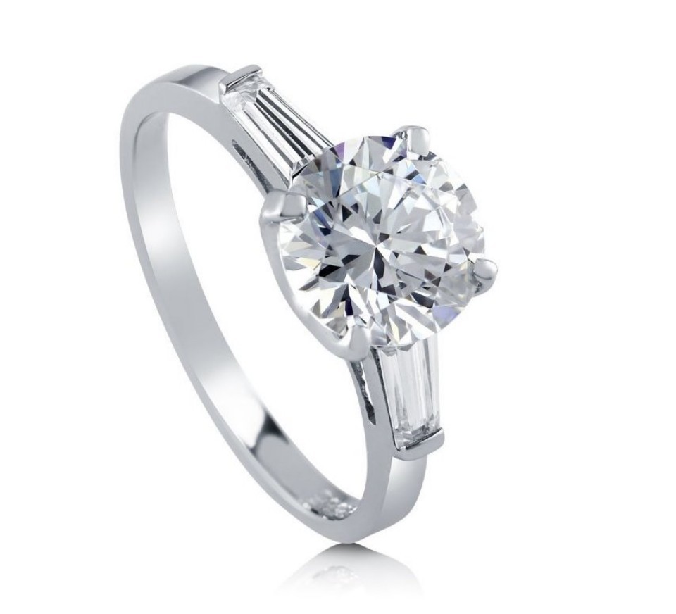 Sterling Silver AAAA Round Cubic Zirconia Solitaire Ring
