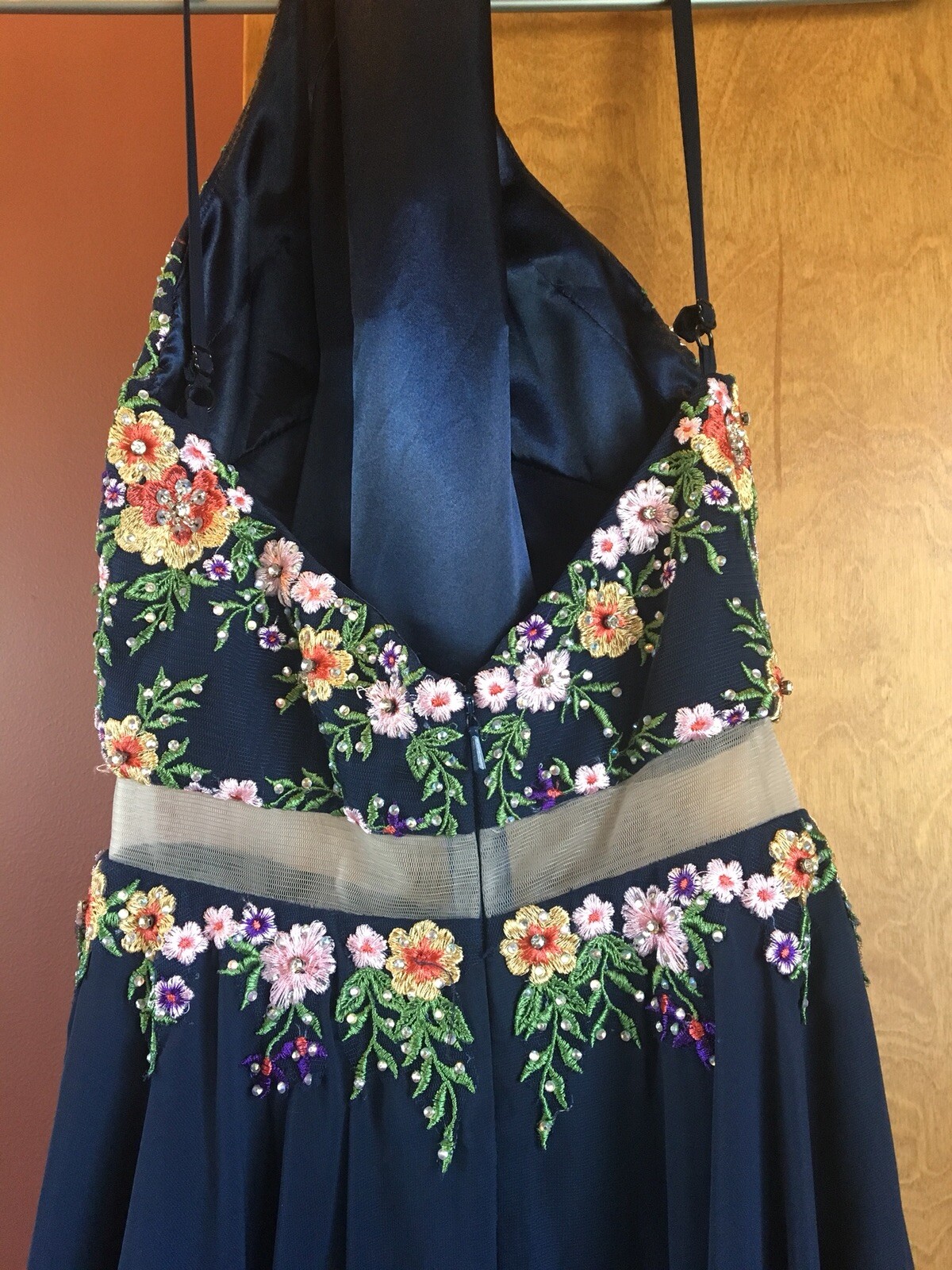 как выглядит Navy Blue Mock 2-Piece Prom Formal Dress by Tiffany High Neck Embroidered Size фото