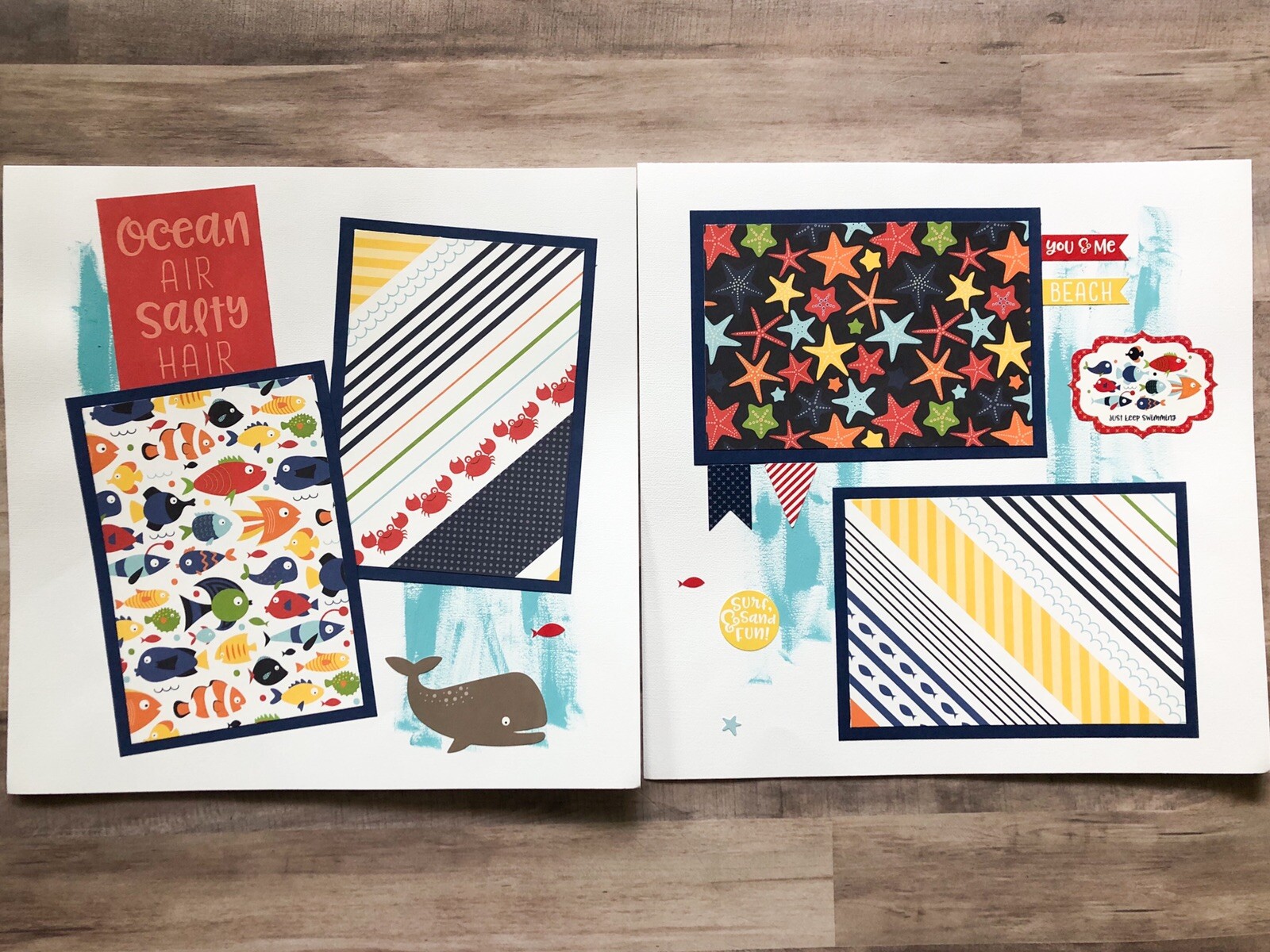 Vacation Scrapbook Layout, Beach Scrapbook Pages, 12 by 12 Pool Party Pages