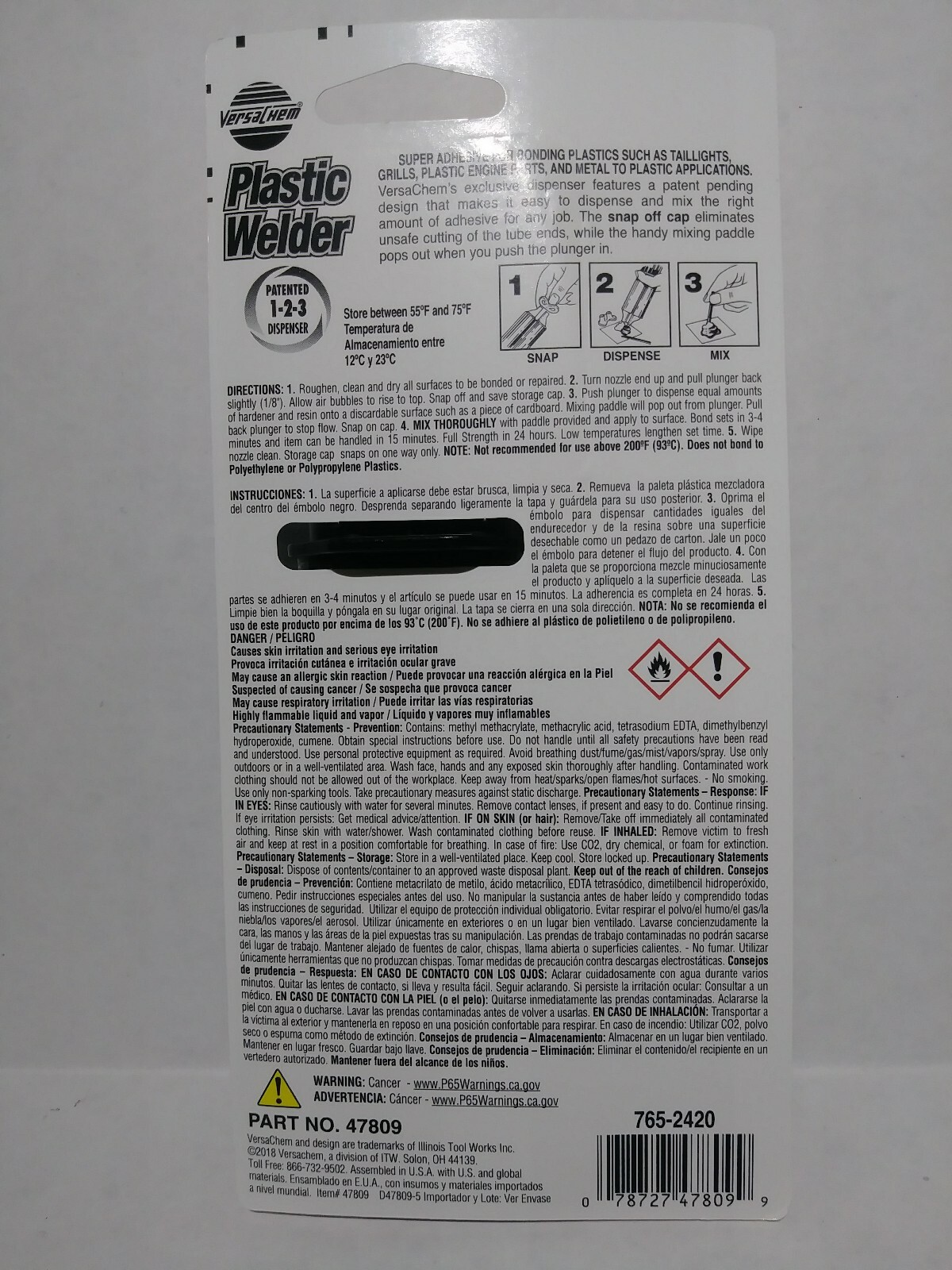 Plastic Welder EPOXY bonds 2 VersaChem 3500 psi 25ml Epoxies Glues 47809