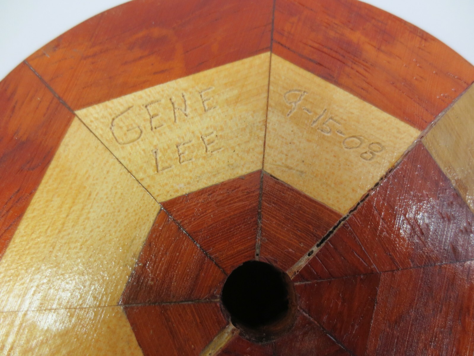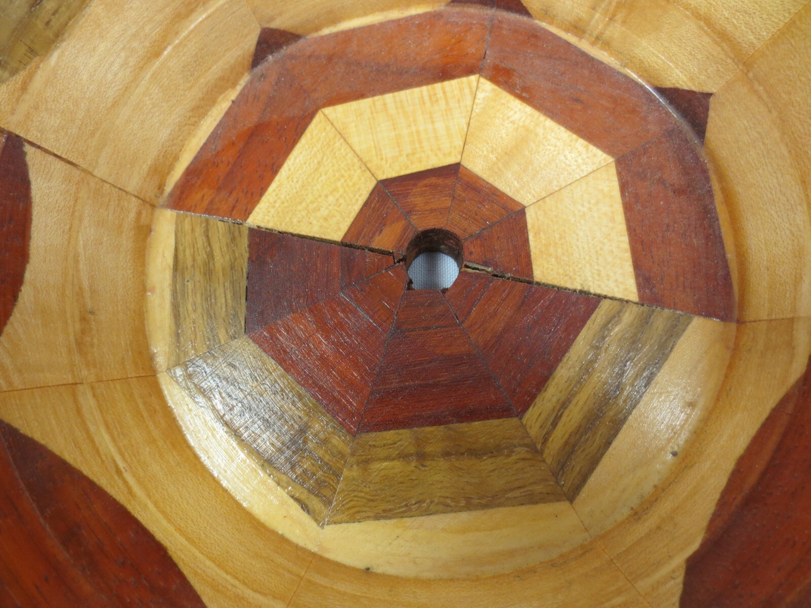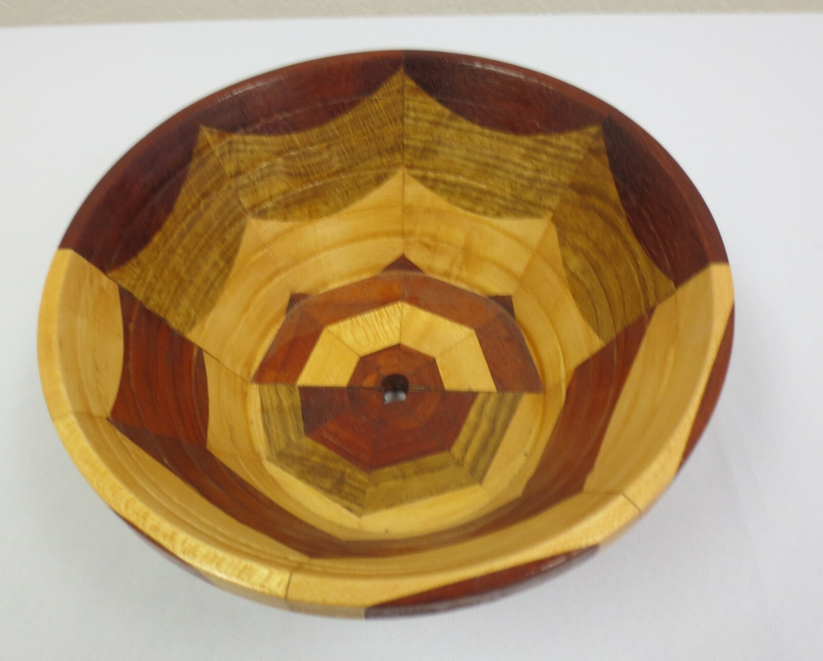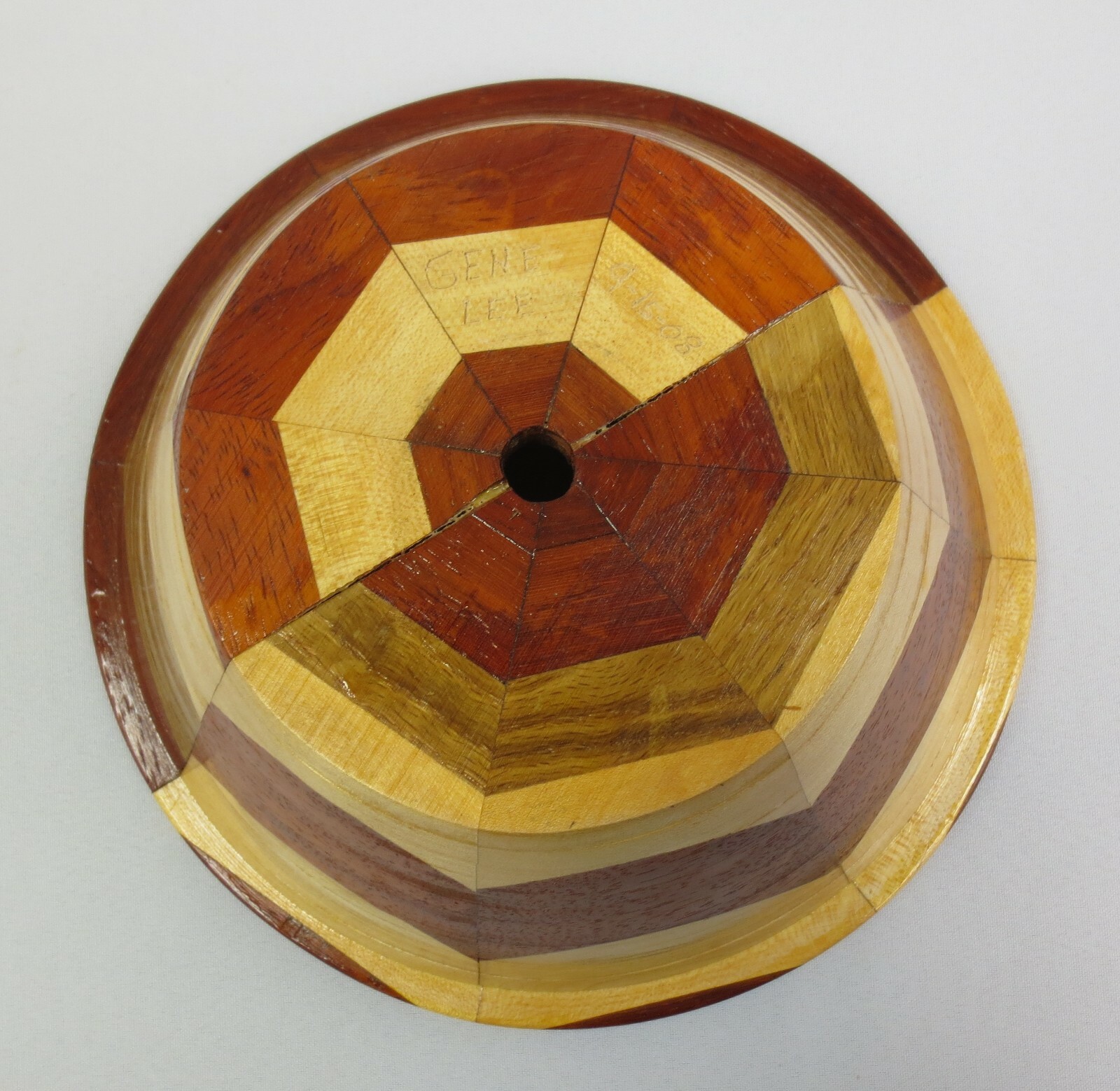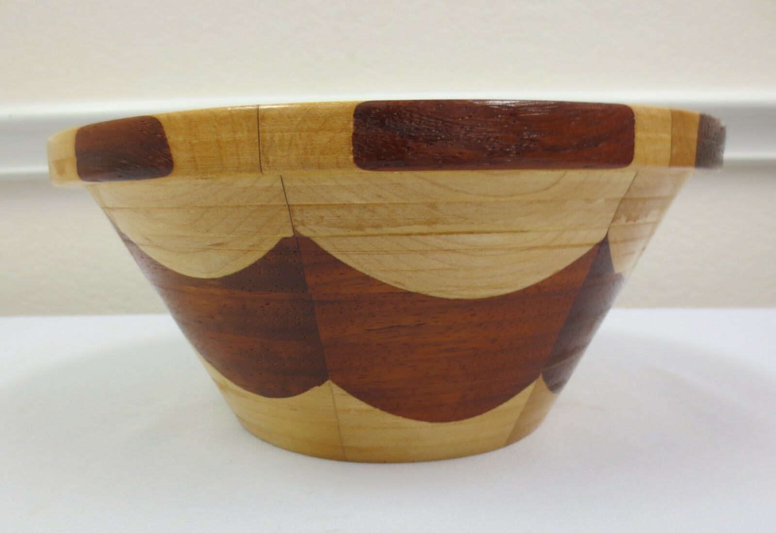 Mixed wood segmented turned wooden bowl planter vase approx. 4.5T x 10W Signd