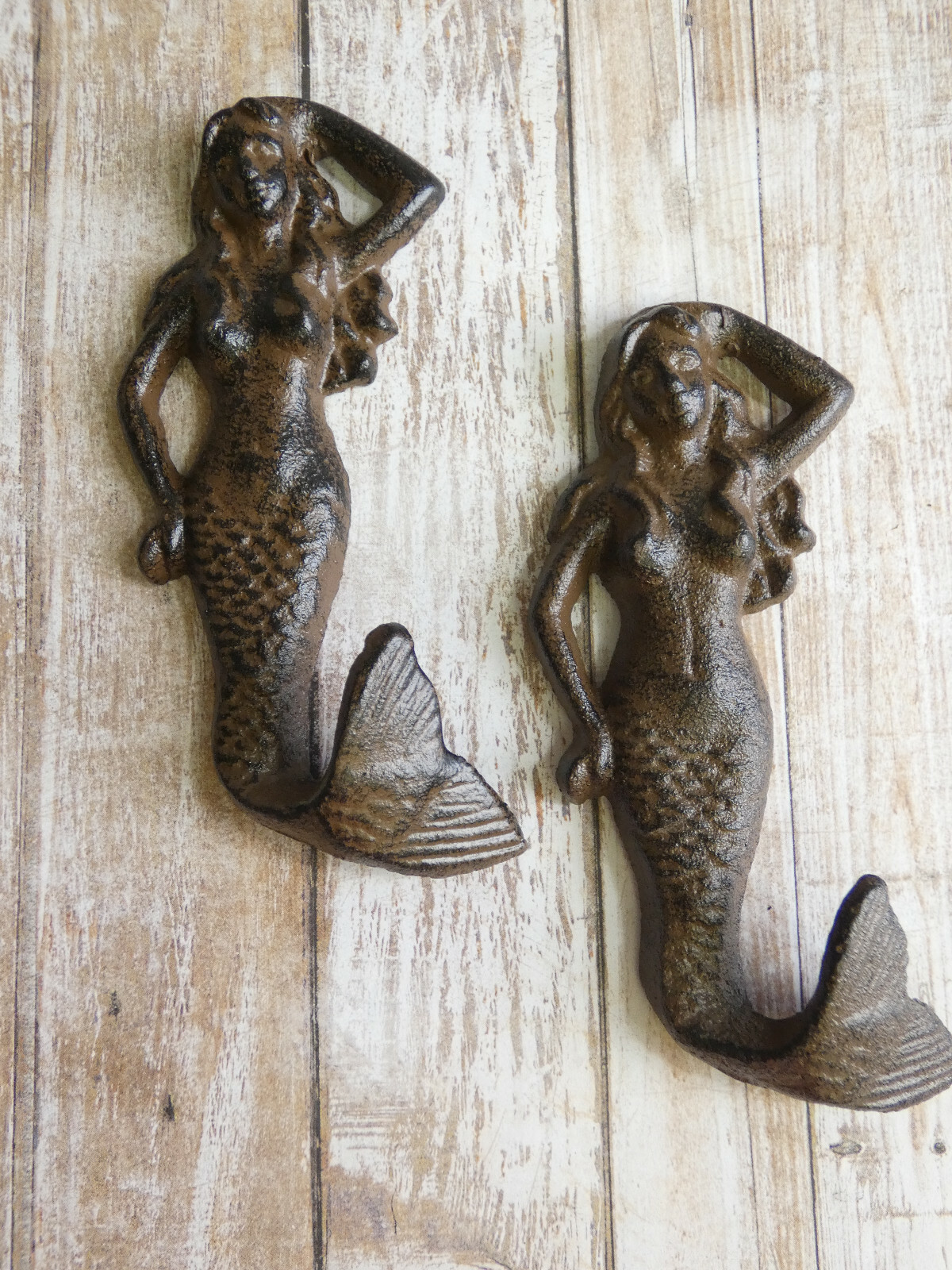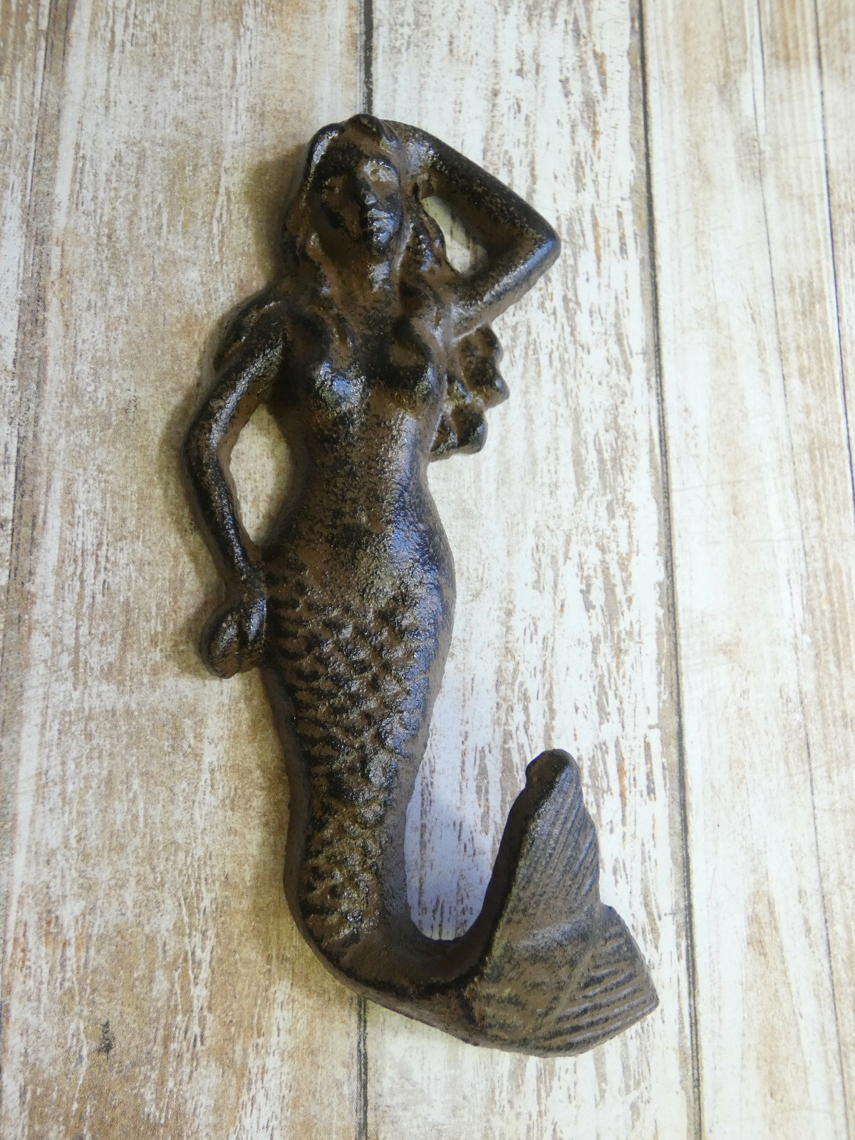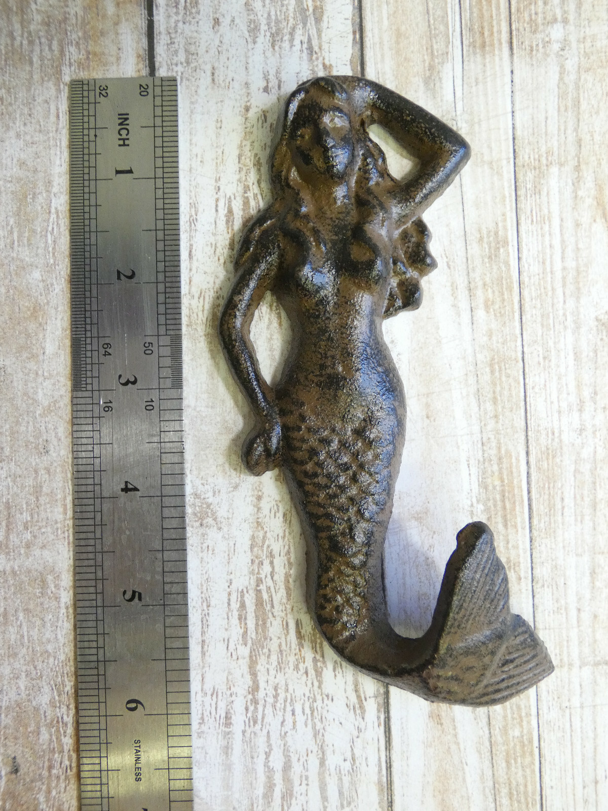 Mermaid Heavy Duty Cast Iron Wall Hook For Towel Key Hats Leash Beach Ocean Pool