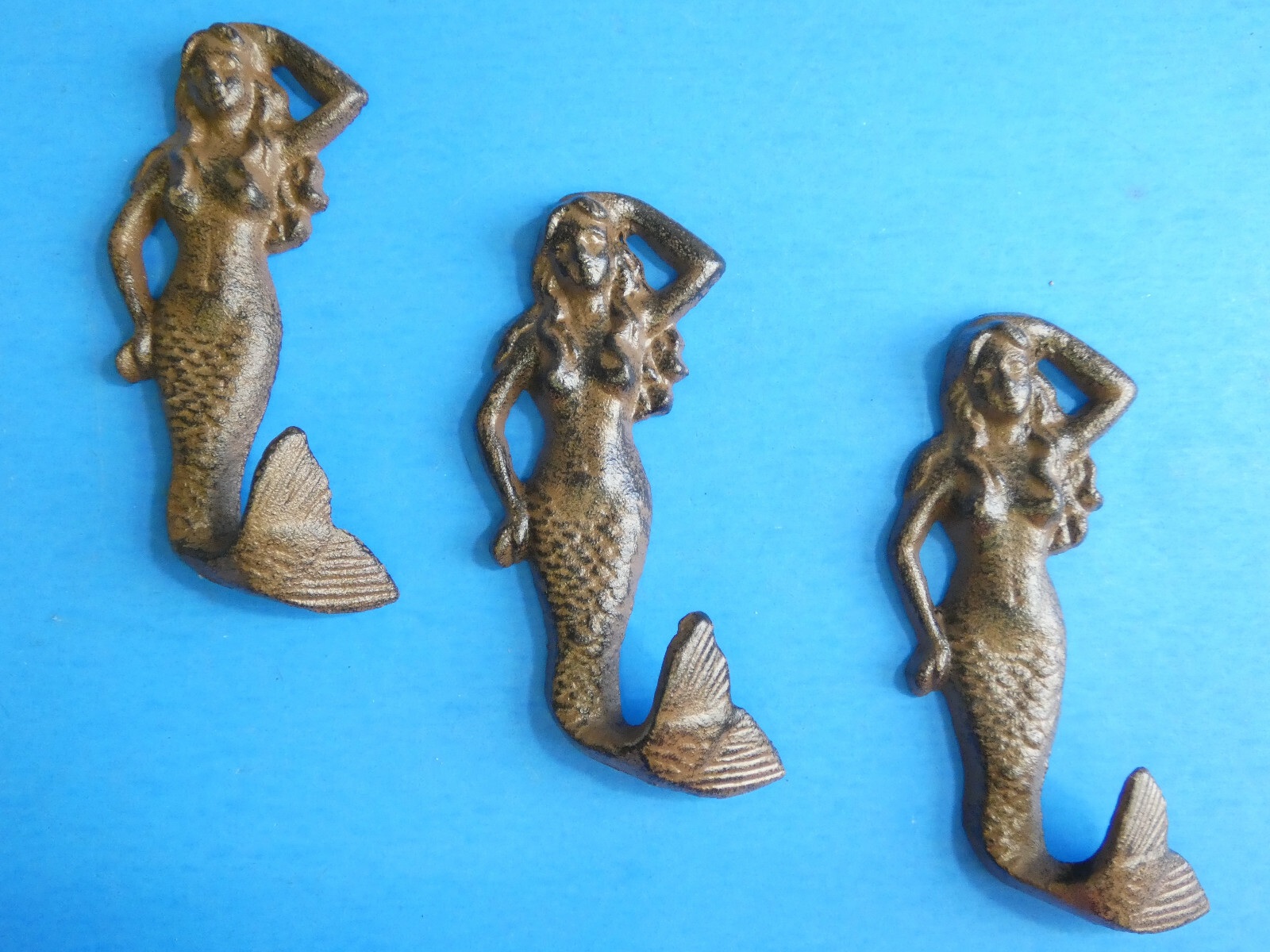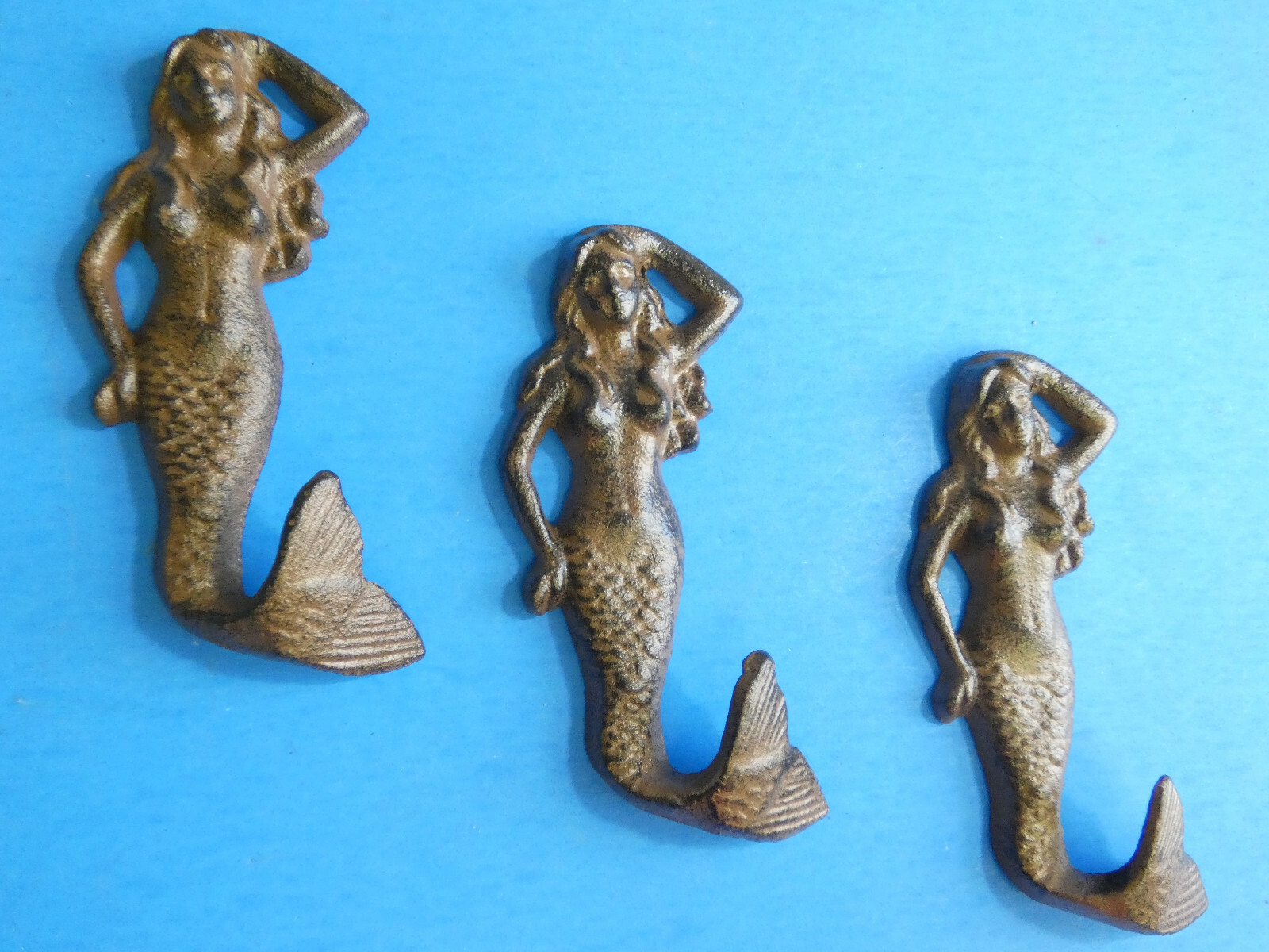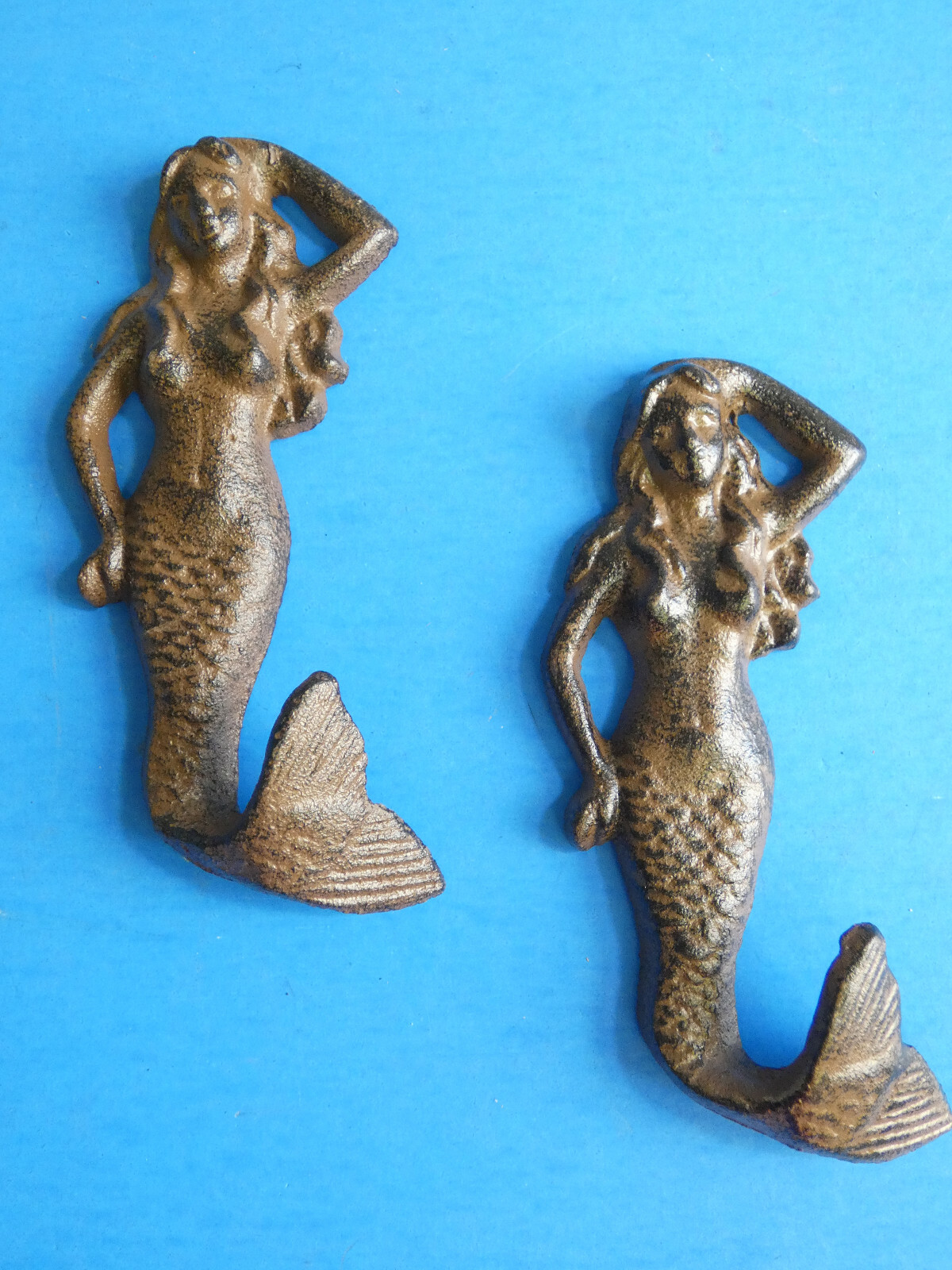 Mermaid Heavy Duty Cast Iron Wall Hook For Towel Key Hats Leash Beach Ocean Pool