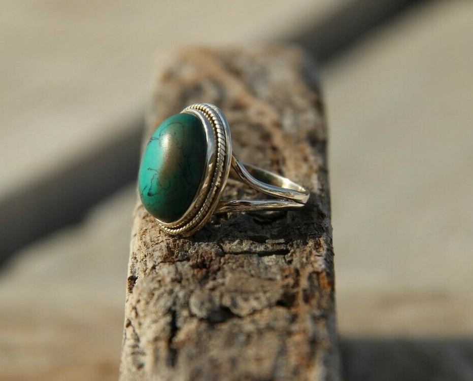 Solid 925 Sterling Silver Turquoise Oval Shape Designer Handmade Ring All Size