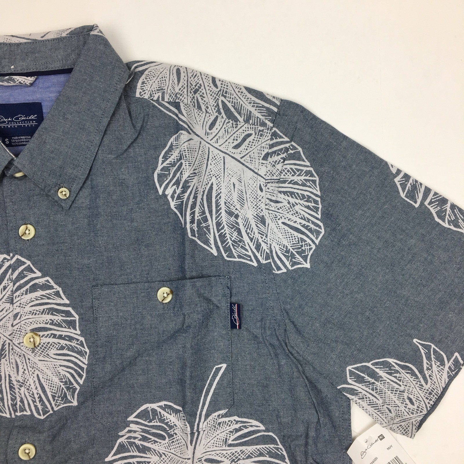 Jack O'Neill Men's Button Down Shirt Collection Hawaiian Palm Leaf Small Blue