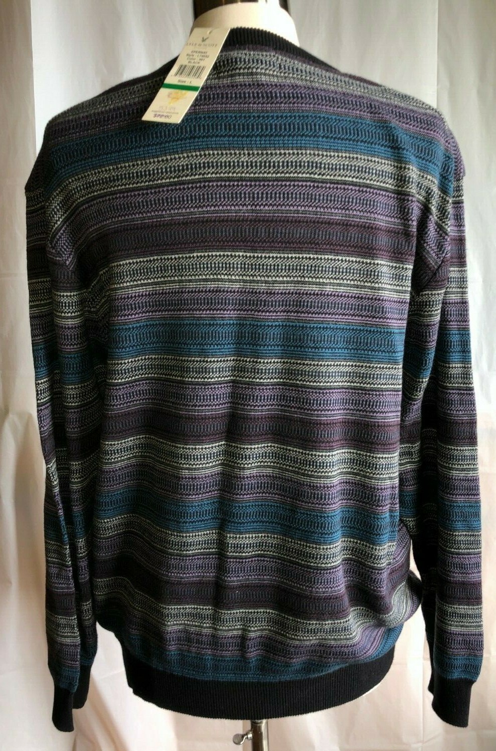как выглядит 72 Lyle Scott Mens L Large V Neck Sweater 100 Combed Cotton Multi Stripe фото