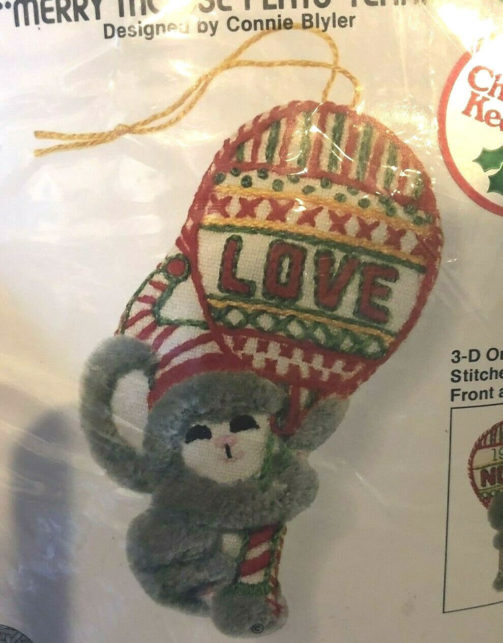 как выглядит Vtg Jiffy Stitchery 3D Ornament Kit Merry Mouse Plays Tennis by Connie Blyler фото