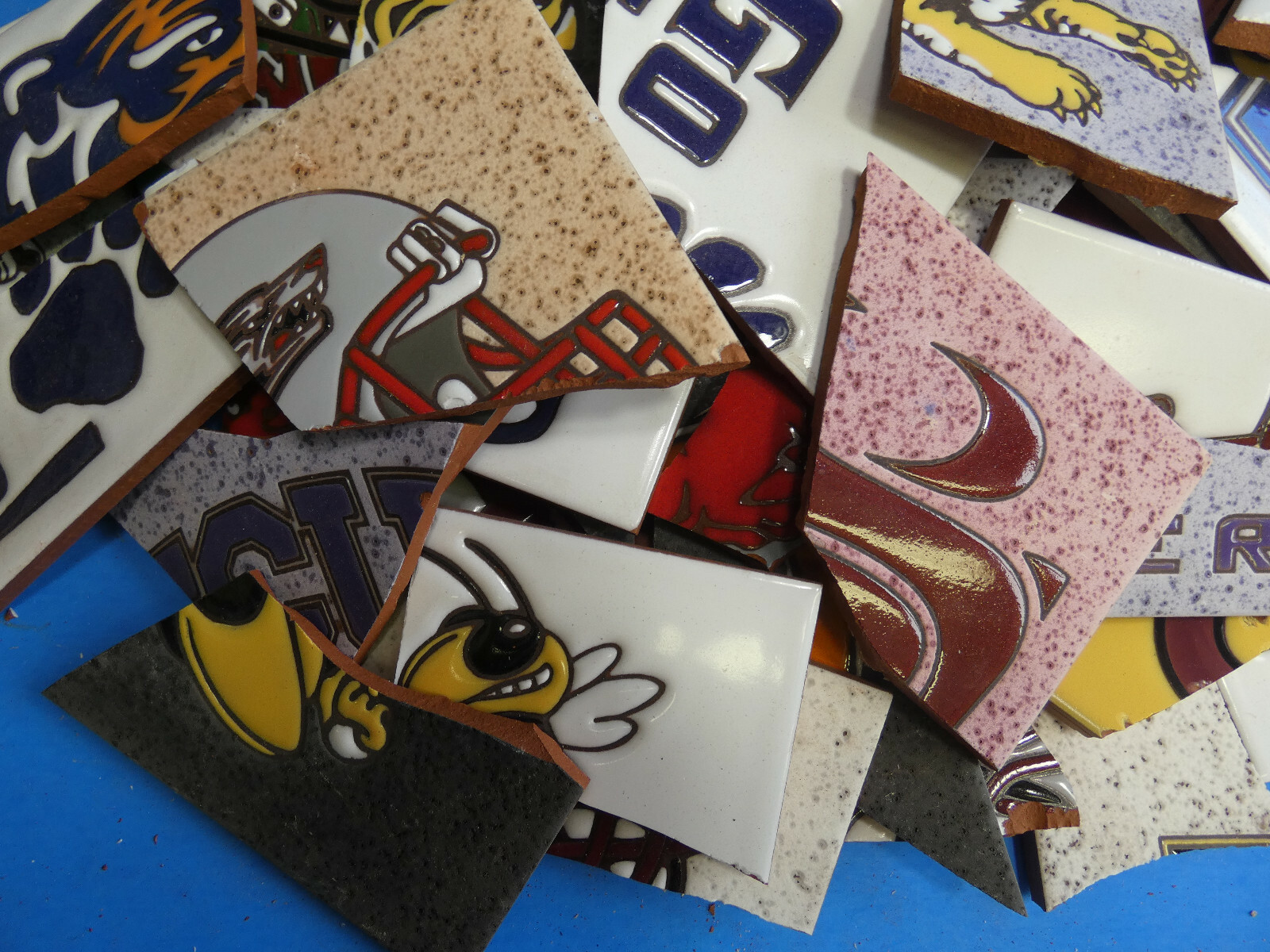 Ceramic Tile 20 pound box broken pieces mosaic Rare College Sports Teams Mix