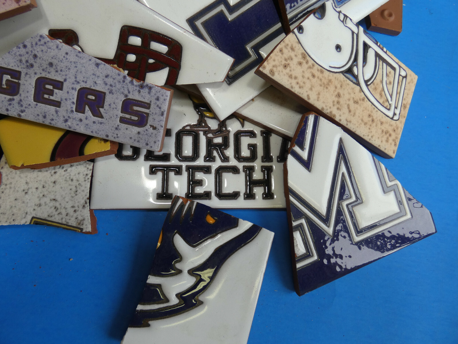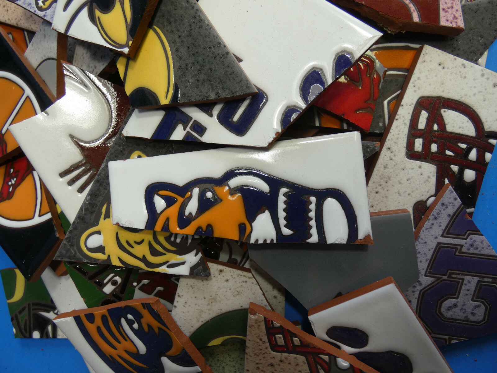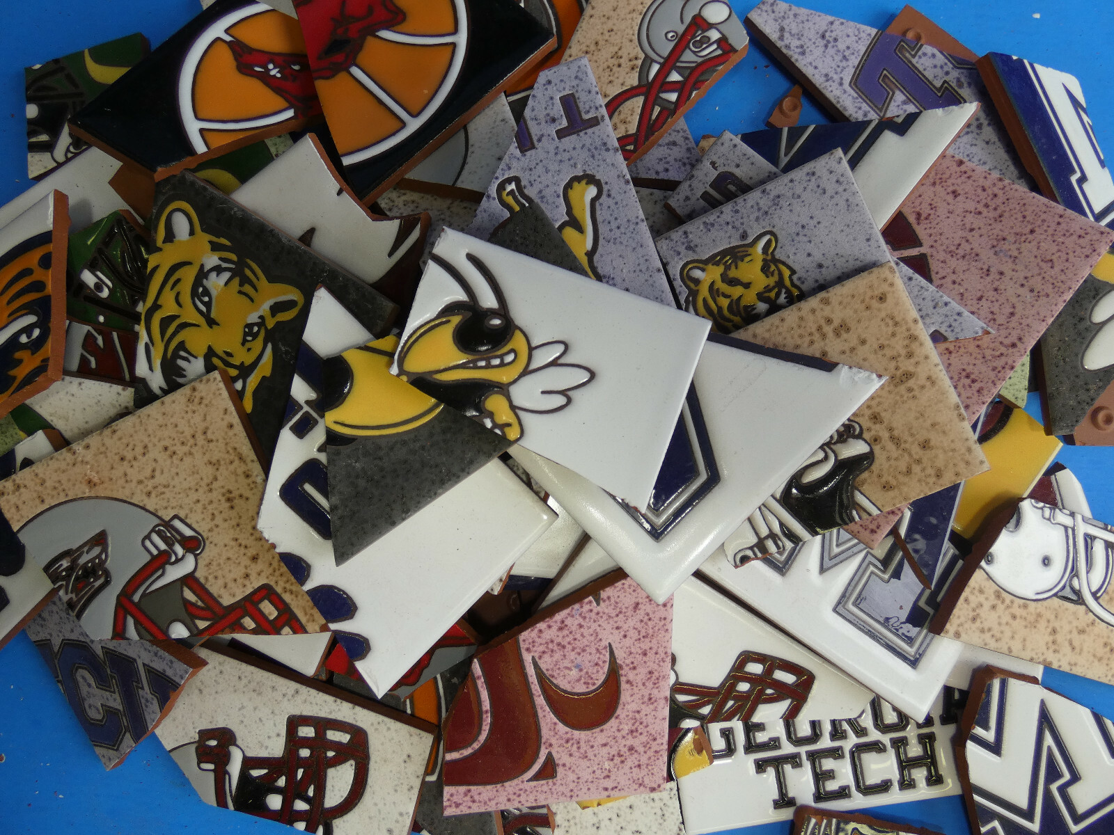 как выглядит Ceramic Tile 20 pound box broken pieces mosaic Rare College Sports Teams Mix фото