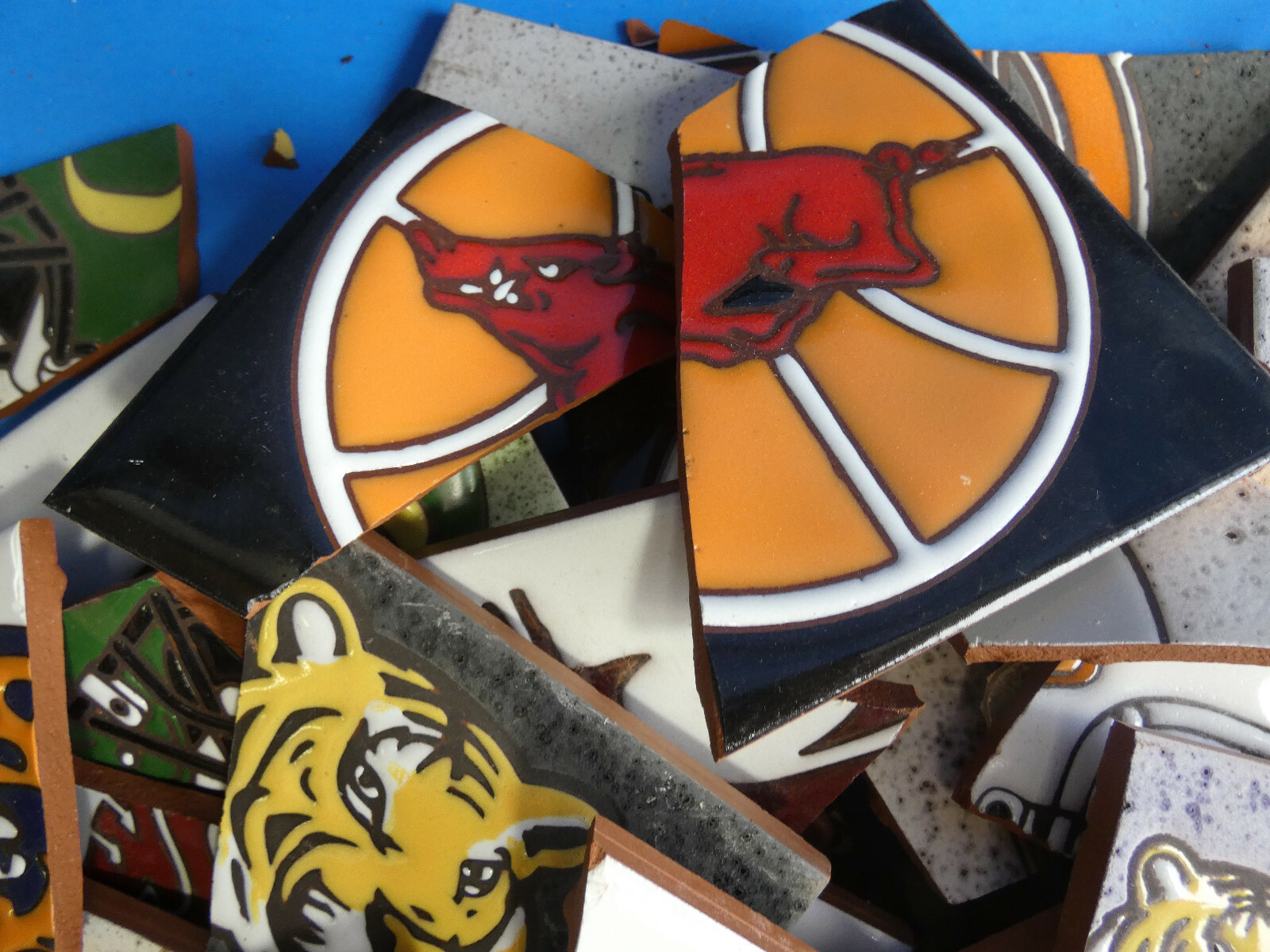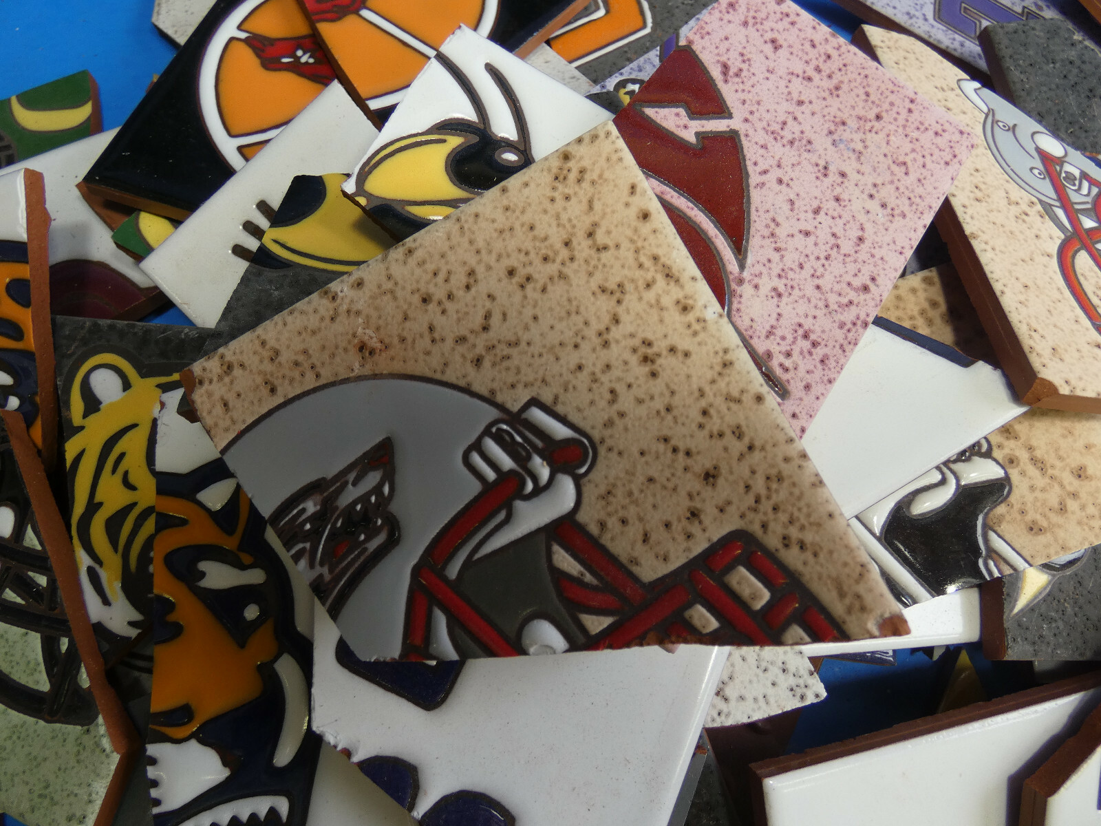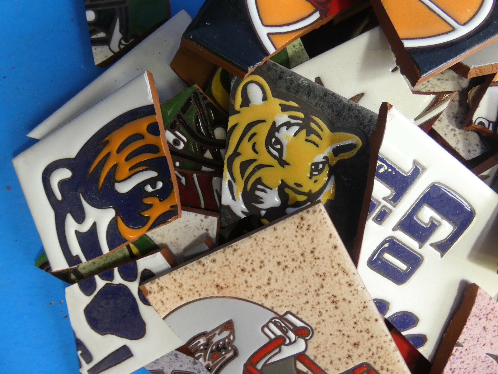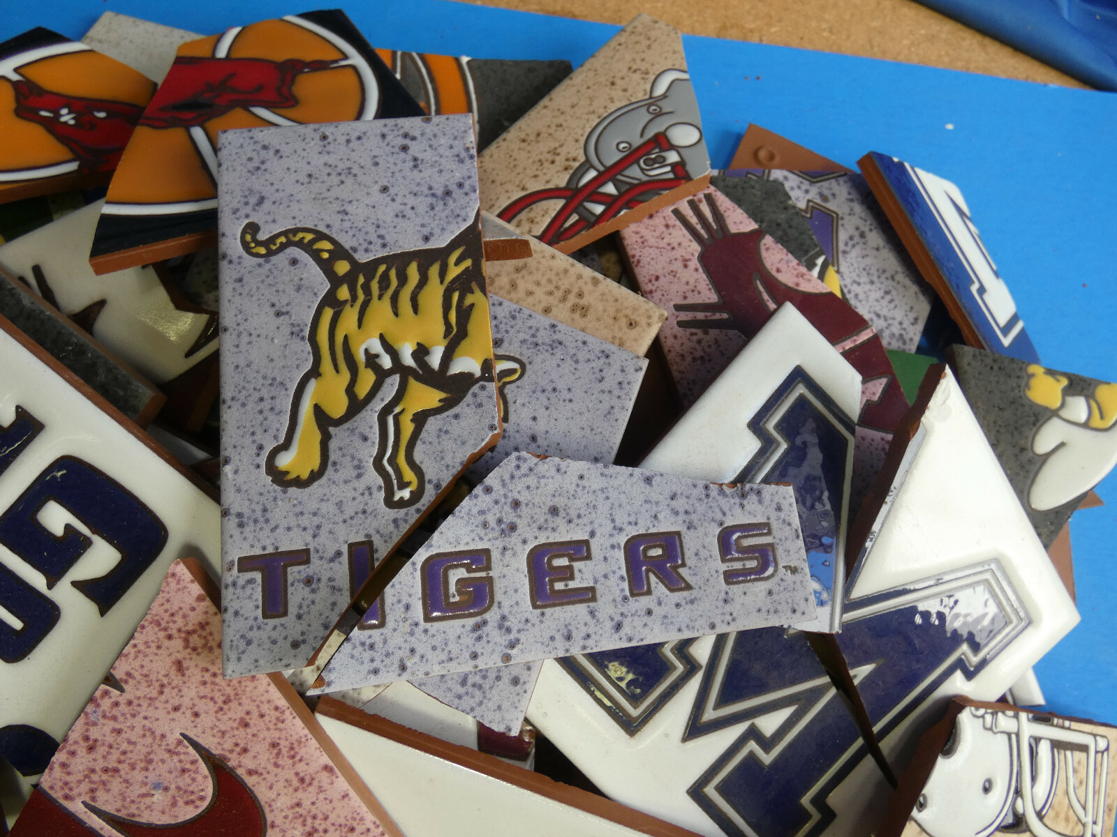как выглядит Ceramic Tile 20 pound box broken pieces mosaic Rare College Sports Teams Mix фото